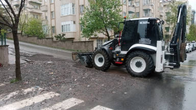Büyükşehir Belediyesi, etkili olan sağanak yağışla inşaat alanlarından yola akarak mazgalları kapatan malzemeleri temizlemek için 100 araç ve 250 personelle sahada.