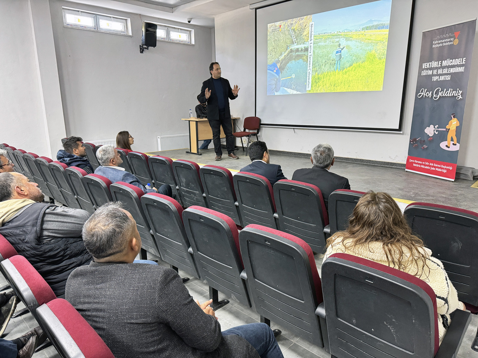 Kahramanmaraş Büyükşehir Belediyesi, halk sağlığını tehdit eden zararlılarla mücadelede daha etkin ve sürdürülebilir çözümler üretmek amacıyla başlattığı eğitim ve bilgilendirme toplantılarına devam ediyor. Bu kapsamda, Vektörle Mücadele Şube Müdürlüğü koordinesinde Türkoğlu’nda önemli bir seminer gerçekleştirildi. Türkoğlu Kayı Boyu Ortaokulunda düzenlenen bilgilendirme toplantısında, mahalle muhtarlarına vektörle mücadeleye dair kapsamlı bilgiler verildi. Seminere, akademisyenler ve alanında uzman teknik personeller katılarak zararlılarla mücadelede bilimsel ve çevre dostu yöntemler üzerine sunumlar gerçekleştirdi.