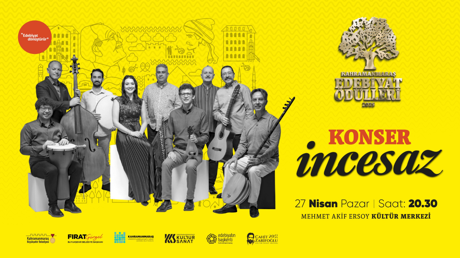 Programda, Türk müziğinin sevilen gruplarından İncesaz sahne alacak. Kendine özgü tarzı ve zarif repertuvarıyla tanınan grup, seslendireceği eserlerle geceye unutulmaz bir müzikal atmosfer katacak. Katılımcılar, edebiyatın büyüsünü müzikle harmanlayan özel bir akşam yaşayacak.