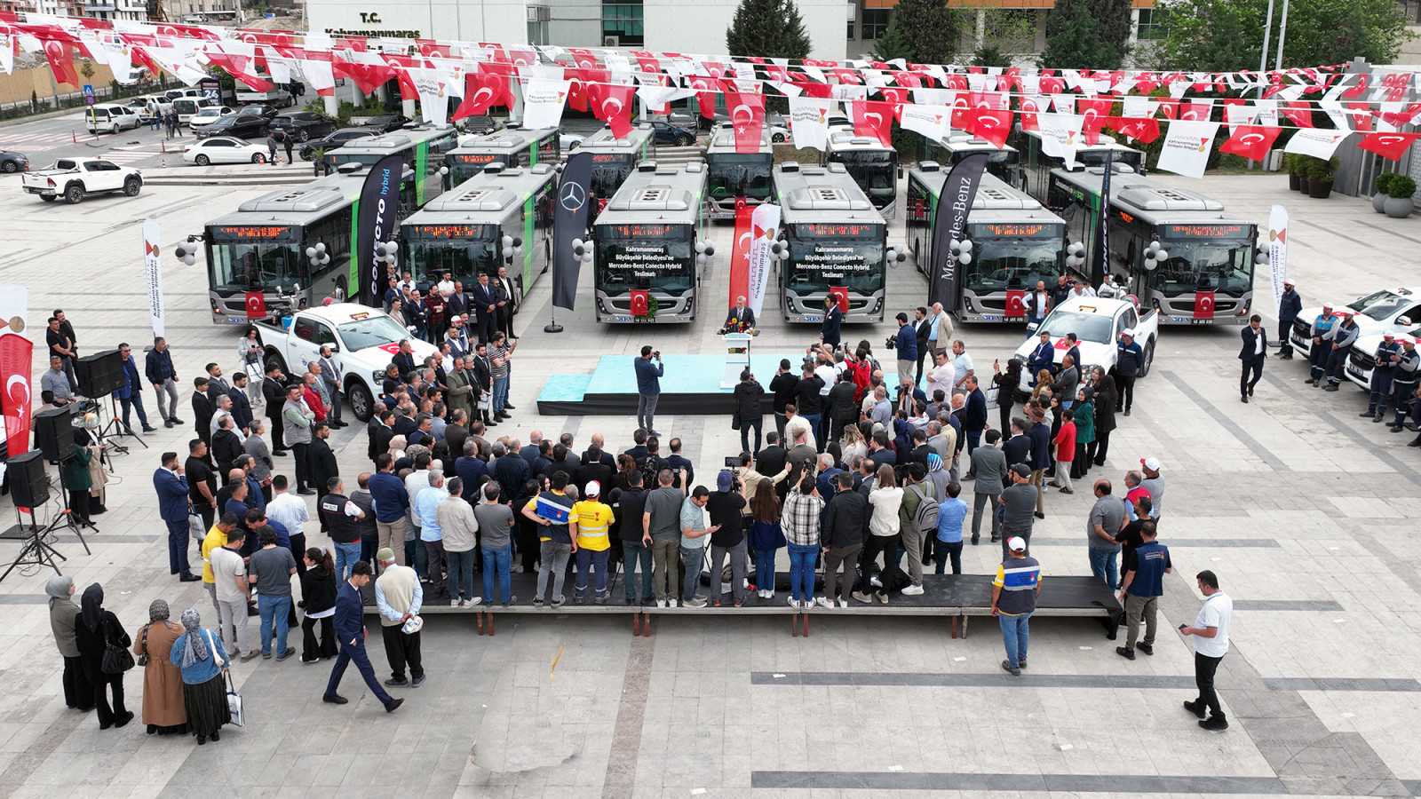 Kahramanmaraş Büyükşehir Belediyesi, hizmet kapasitesini artırmak ve şehrin dört bir yanında yürütülen çalışmalara hız kazandırmak amacıyla araç filosunu güçlendiriyor. Milli İrade Meydanı’nda düzenlenen törende; otobüs, pikap ve servis araçlarından oluşan 48 yeni aracın teslimi gerçekleştirildi. Törene; AK Parti Kahramanmaraş Milletvekili Ömer Oruç Bilal Debgici, Büyükşehir Belediye Başkanı Fırat Görgel, KİÜ Rektörü Prof. Dr. İsmail Bakan, AK Parti İl Başkanı Muhammed Burak Gül, MHP İl Başkanı Hüseyin Vahit Demiröz, Onikişubat Belediye Başkanı Hanifi Toptaş, AK Parti İl Kadın Kolları Başkanı Asuman Yavuz ve çok sayıda vatandaş katıldı.