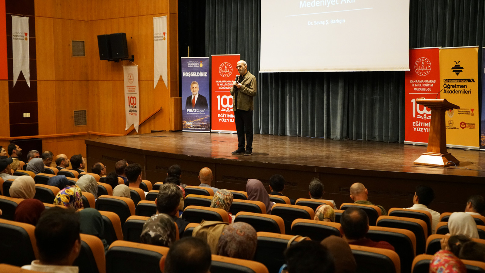 Kahramanmaraş Büyükşehir Belediyesi, kültür ve sanat organizasyonlarına bir yenisini daha ekledi. Toplumun her kesimine hitap eden etkinlikleriyle dikkat çeken Büyükşehir Belediyesi, İl Milli Eğitim Müdürlüğü iş birliğiyle edebiyatseverleri anlamlı bir programda buluşturdu. Necip Fazıl Kısakürek Kültür Merkezi’nde düzenlenen ve yoğun katılımın olduğu “Medeniyet Aklı” konulu söyleşide, Türk edebiyatının saygın isimlerinden Yazar Savaş Barkçin, edebiyat ve düşünce dünyasına dair derinlikli değerlendirmelerde bulundu. Eserlerinde gelenekle modernliği, gönülle aklı buluşturan bir çizgide yürüyen Barkçin, konuşmasında kültürel mirasımızın taşıyıcısı olan medeniyet aklını günümüz dünyasında nasıl yeniden anlamlandırabileceğimizi ele aldı. Katılımcılar tarafından ilgiyle takip edilen programda edebiyatseverler, hem bilgi hem de ilham dolu bir söyleşiye tanıklık etmenin memnuniyetini dile getirdi.