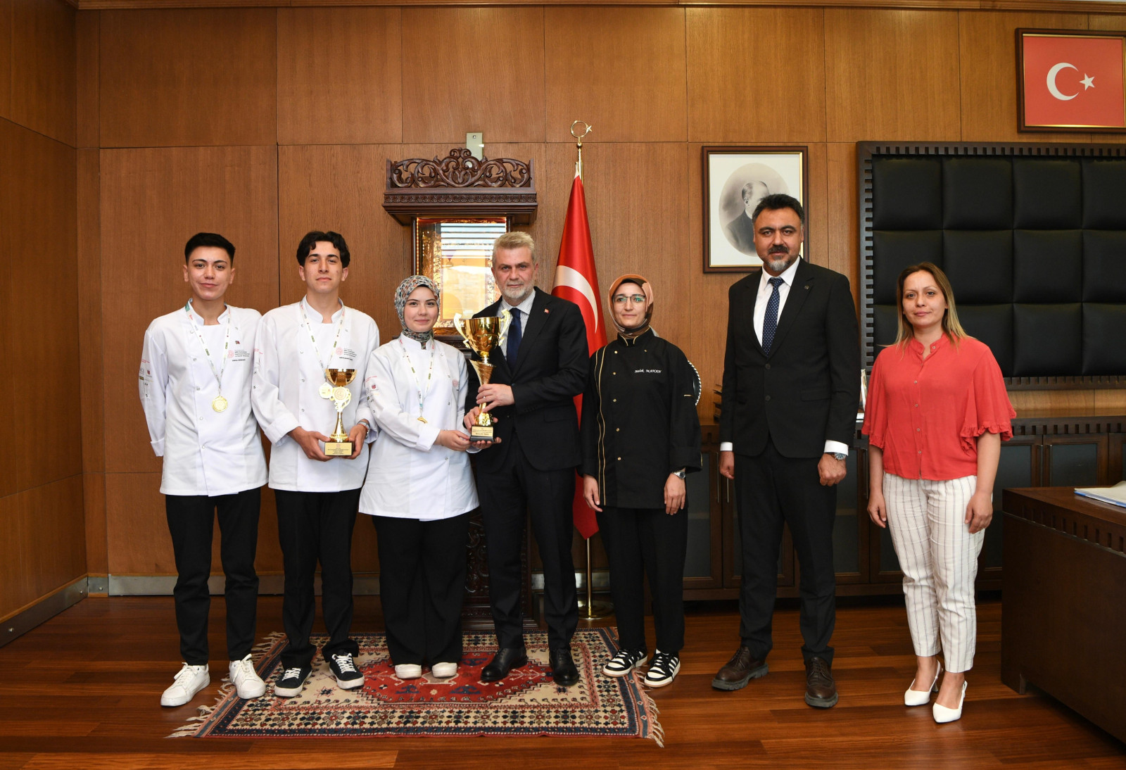MEB Uluslararası Gastronomi Festivali ve Aşçılık Yarışması’nda büyük bir başarıya imza atarak birincilik elde eden MADO Akdeniz Turizm Mesleki ve Teknik Anadolu Lisesi öğrencilerini ağırlayan Başkan Görgel, “Bu kıymetli başarıya imza atan öğrencilerimizi, onları yetiştiren öğretmenlerimizi ve okul yönetimini yürekten kutluyorum. Büyükşehir Belediyesi olarak, gençlerimizin her zaman yanındayız ve bu başarıların çoğalması için gereken desteği vermeye devam edeceğiz” dedi.