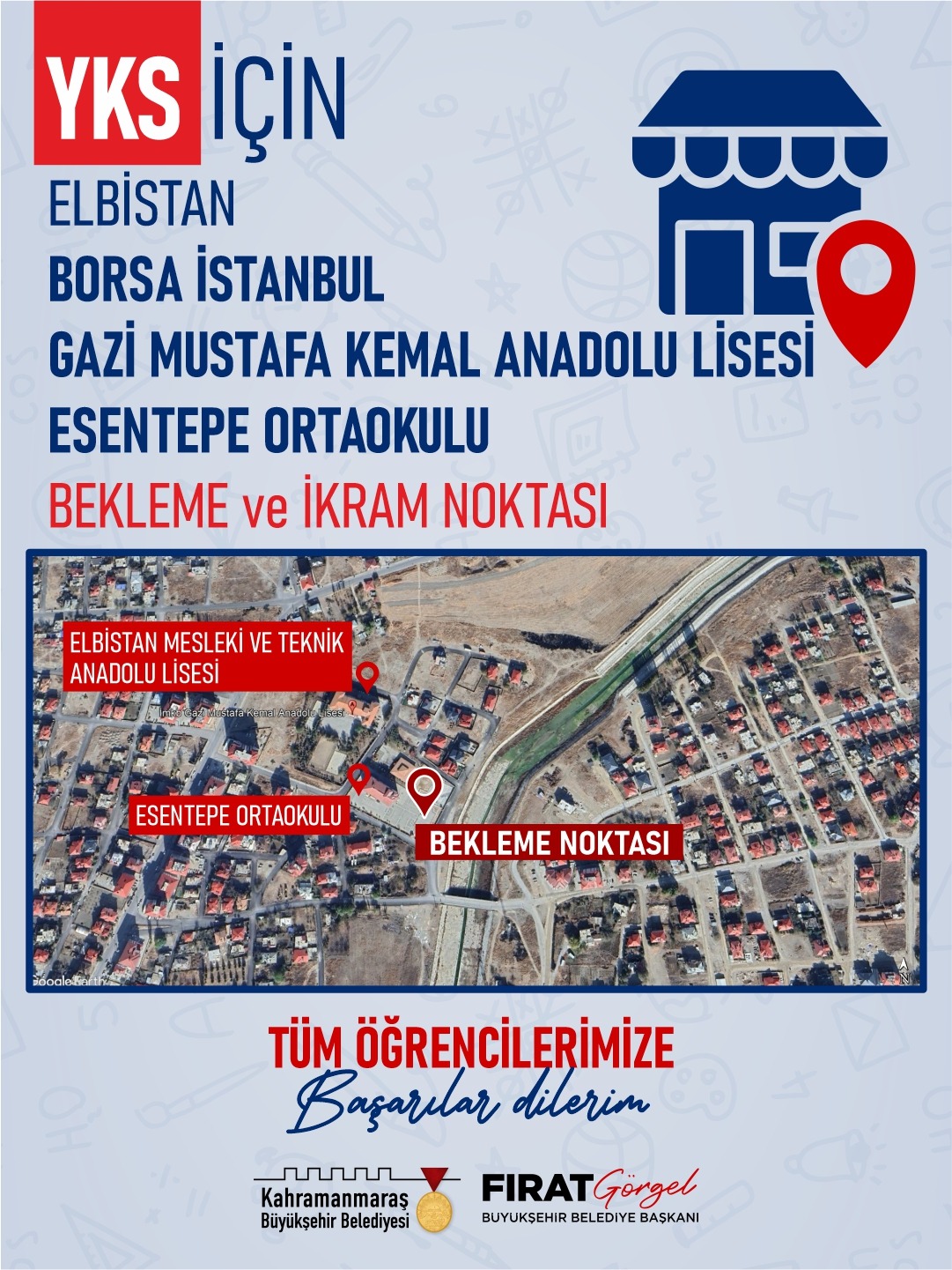 Uygulama kapsamında Onikişubat’ta KSÜ Avşar Kampüsü Fen Fakültesi önünde, Dulkadiroğlu’nda ise Hacı Bektaşi Veli Caddesi üzerindeki okul bölgesinde bekleme alanları oluşturulacak. Vatandaşlara burada çeşitli ikramlarda bulunularak sınav sürecinde daha huzurlu ve konforlu bir atmosfer sunulacak. Elbistan’da da benzer uygulamalar hayata geçirilecek. Esentepe Ortaokulu, Mesleki ve Teknik Anadolu Lisesi ile Şehit Kamil Topal Ortaokulu önlerinde kurulacak bekleme alanları, sınav süresince öğrenci yakınlarına hizmet verecek.