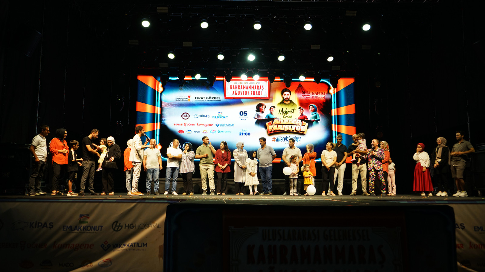 Kahramanmaraş Büyükşehir Belediyesi tarafından “2025 Aile Yılı” kapsamında bu yıl “Ailecek Fuardayız” temasıyla düzenlenen Uluslararası Geleneksel Ağustos Fuarı, şehirde sosyal yaşama canlılık katmaya devam ediyor. 7’den 70’e her yaştan vatandaşın yoğun ilgi gösterdiği fuar, KAFUM Fuar Alanı’nda binlerce misafiri ağırlamayı sürdürüyor. Fuar programı kapsamında düzenlenen özel etkinliklerden biri de Türkiye’nin sevilen yazar ve sanatçılarından Mehmet Ercan’ın sunumuyla gerçekleştirilen “Aileler Yarışıyor” programı oldu. Etkinlikte, sahneye çıkan çiftler Mehmet Ercan’ın yönelttiği sorularla hem bilgilerini hem de aralarındaki uyumu test etme fırsatı buldu. Dostane rekabetin hâkim olduğu yarışmada izleyiciler de sahnedeki neşeli diyaloglara kahkahalarla eşlik etti. Program boyunca sahnede keyifli anlar yaşanırken, izleyiciler de eğlenceye doydu. Yarışma sonunda dereceye giren aileler, çeşitli hediyelerle ödüllendirildi.