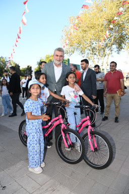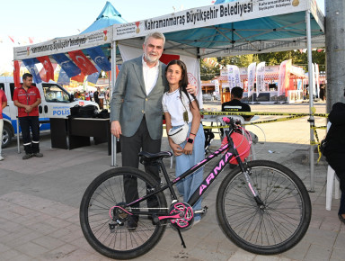 Programda konuşan Büyükşehir Belediye Başkanı Fırat Görgel, “Kahramanmaraş’ımız gerçekten önemli bir mücadele örneği gösteriyor. Şehrimiz hem altyapı hem de üstyapı çalışmalarıyla tüm ilçelerimizde adeta bir şantiye alanı hüviyetinde ve süreçler olumlu yönde ilerliyor. İnşallah birkaç yıl içerisinde vatandaşlarımız çok daha güzel ve konforlu koşullarda yaşam standartlarını geliştirmiş olacaklar. Bunların yanı sıra sosyal sorumluluk bizim vazgeçilmez yanımızdır. Bu alanda yapmış olduğumuz hizmetler, altyapı ve üstyapı çalışmaları kadar önem arz etmektedir. Şehrin çocukları, gençleri, kadınları ve her katmanında emeğimizin bulunmasını arzu ediyoruz. Bu kapsamda tüm ekip arkadaşlarımızla büyük çaba sarf etmekteyiz. Bugün de çocuklarımızın ilk bisikletlerini teslim ediyoruz. Genç kardeşlerimizin ilk bisikletini hediye etmek bizler için büyük mutluluk kaynağı. İnşallah anılarına ortak olmuşuzdur ve bundan sonraki dönemde her bisiklete bindiklerinde büyüklerini hatırlamış olurlar. Projede emeği geçen tüm kurumlarımıza teşekkür ediyor, yeni bisikletlerin yavrularımıza hayırlı olmasını diliyorum” cümlelerini kaydetti.