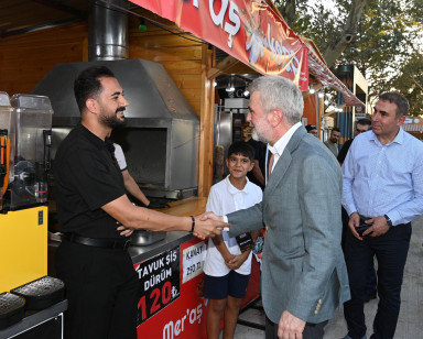 Kahramanmaraş Büyükşehir Belediye Başkanı Fırat Görgel, büyük bir ilgi ve coşkuyla devam eden Geleneksel Ağustos Fuarı’nı ziyaret ederek esnaf ve vatandaşlarla bir araya geldi. Fuar alanındaki stantları tek tek gezerek esnaflara hayırlı ve bereketli kazançlar dileyen Başkan Fırat Görgel, vatandaşlarla da yakından ilgilenerek katılımcılarla sohbet edip hatıra fotoğrafları çektirdi. Ziyaret sırasında fuara gösterilen yoğun ilginin memnuniyet verici olduğunu belirten Başkan Görgel, fuarın Kahramanmaraş’ın ekonomik, kültürel ve sosyal hayatına önemli katkılar sunduğunu vurguladı.