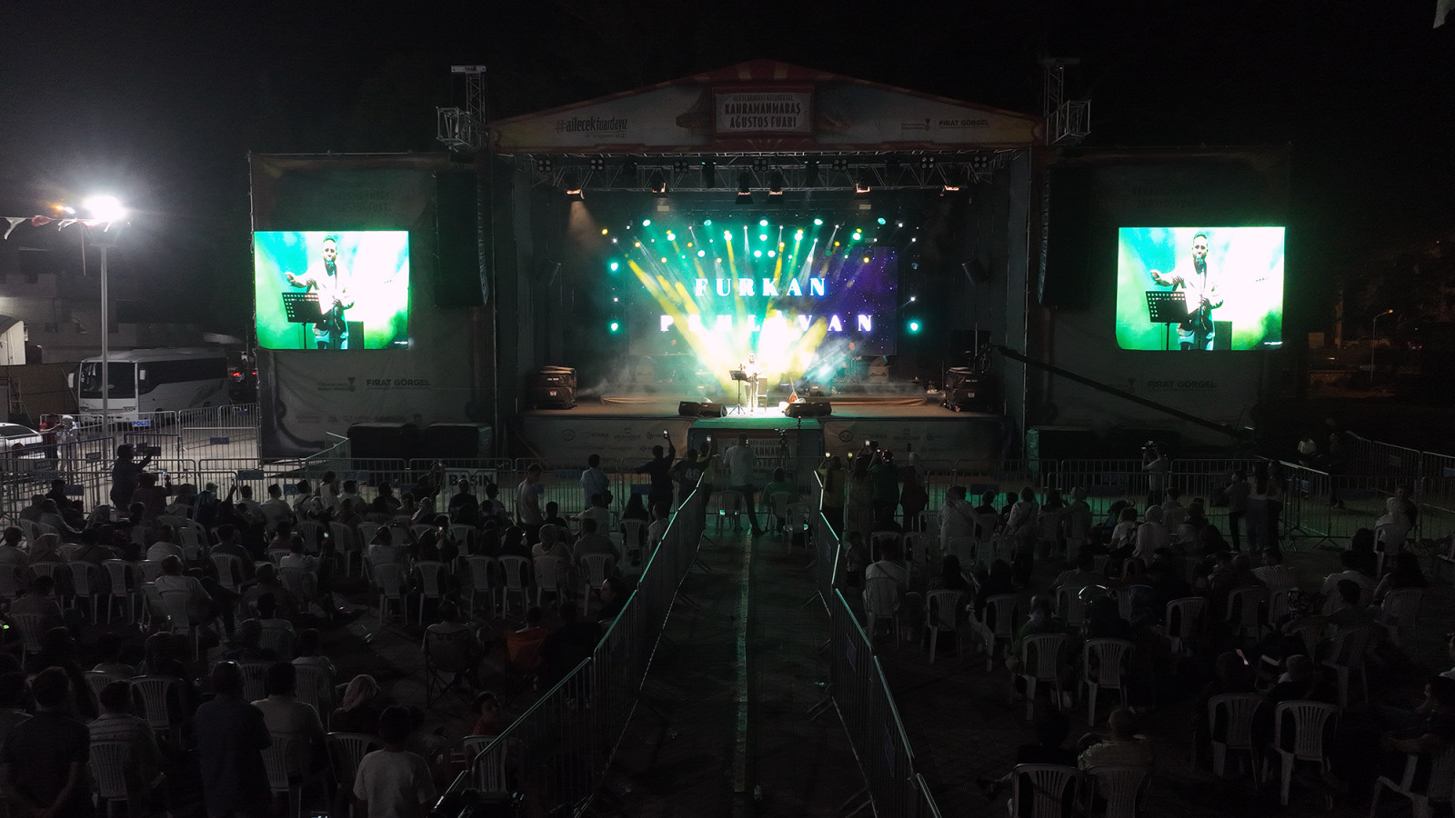 Kahramanmaraş Büyükşehir Belediyesinin düzenlediği Geleneksel Ağustos Fuarı, KAFUM Fuar Alanı’nda tüm coşkusuyla devam ediyor. Kültürel mirasın, yöresel lezzetlerin ve eğlenceli etkinliklerin buluşma noktası olan fuar, düzenlenen konserlerle de müzikseverlere unutulmaz anlar yaşatıyor. Bu kapsamda şehrin güçlü sesleri Süleyman Güçlü ve Furkan Pehlivan, KAFUM’da sahne alarak dinleyicilere muhteşem bir türkü ziyafeti sundu. Güçlü ve Pehlivan, Türk halk müziğinin hafızalara kazınmış eserlerini ustalıkla yorumlayarak dinleyicileri hem duygulandırdı hem de coşturdu. Sanatçılar, sazın tınısını ve kendi güçlü yorumlarını ustaca harmanlayarak KAFUM’u adeta bir türkü meclisine dönüştürdü. Müzikseverler, sanatçıların performansına coşkulu alkışlarla eşlik ederken, bazı eserlerde hep bir ağızdan söyleyerek ve halay çekerek geceye renk kattı.