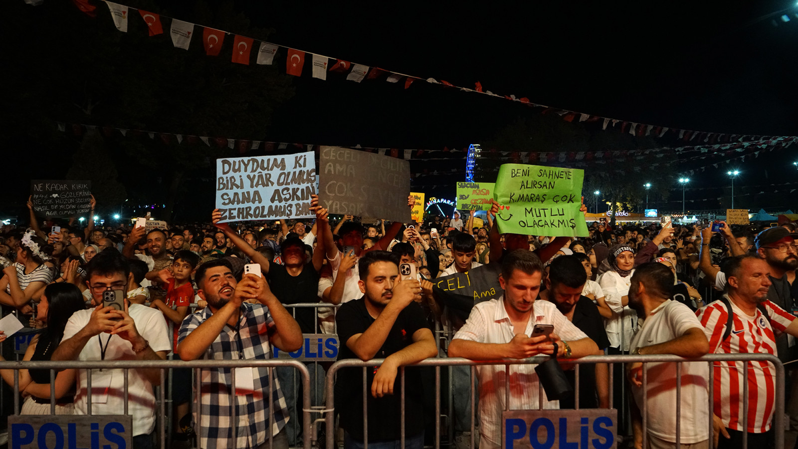 Kahramanmaraş Büyükşehir Belediyesinin Geleneksel Ağustos Fuarı müzik dolu bir geceye daha ev sahipliği yaptı. Türk pop müziğinin sevilen ismi Mustafa Ceceli, Cumartesi akşamı KAFUM’da sahne alarak binlerce müziksevere unutulmaz anlar yaşattı. Alana akın eden hayranlarıyla buluşan Ceceli, sevilen şarkılarından oluşan geniş repertuvarıyla dinleyicilere adeta müzik ziyafeti sundu. “Salıncak”, “Rüzgar”, “Leyla Mecnun”, “Öptüm Nefesinden”, “Bedel”, “Rastgele”, “Maşallah” ve “İlle de Aşk” gibi hit parçalarını seslendiren sanatçı, performansıyla büyük beğeni topladı. Yaklaşık iki saat sahnede kalan Ceceli, konserin finalinde hareketli oyun havalarıyla tempoyu doruğa çıkardı. KAFUM’u adeta bir şenlik alanına çeviren sanatçıya, vatandaşlar hem coşkulu alkışlarıyla hem de halaylarla eşlik etti. Kahramanmaraşlı müzikseverler, sanatçının şarkılarına hep bir ağızdan eşlik ederek KAFUM’u dev bir koroya dönüştürdü. Geniş repertuvarı, samimi sohbeti ve enerjisiyle gönülleri fetheden Mustafa Ceceli, fuar tarihine damga vuran konserlerden birine imza attı.