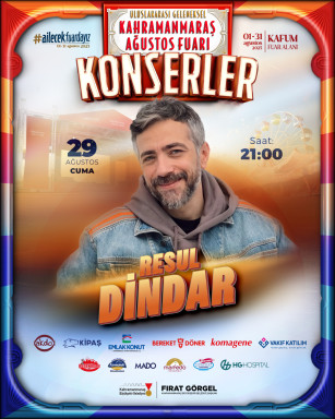 Geleneksel Ağustos Fuarı’nda 29 Ağustos Cuma günü Karadeniz’in güçlü seslerinden Resul Dindar sahne alacak. Karadeniz müziğinin sevilen temsilcisi Resul Dindar, kendine has yorumu ve güçlü sahne performansıyla Kahramanmaraşlılara unutulmaz bir akşam yaşatacak.