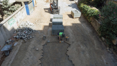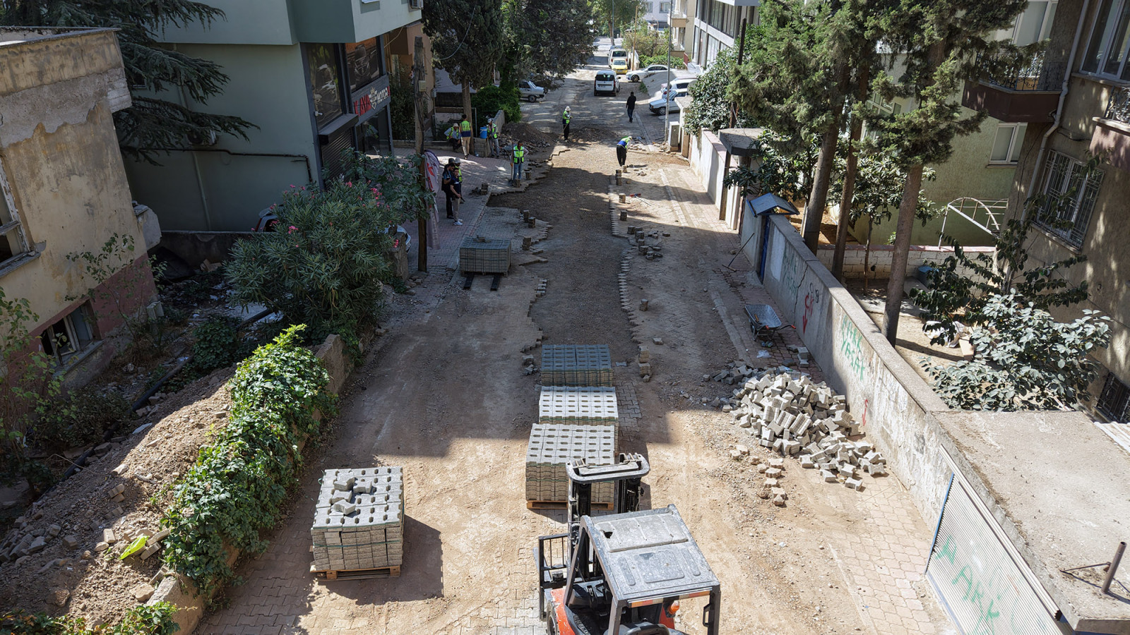 KASKİ, Dulkadiroğlu’nun Menderes Mahallesinde altyapı imalatlarının ardından yol yüzeyinde oluşan bozulmaların giderilmesi için kilit parke döşeme çalışması gerçekleştiriyor.