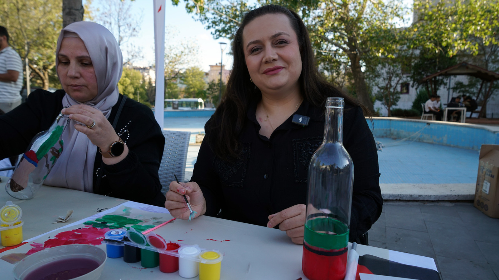 Büyükşehir Belediyesi, Filistin’de yaşanan insanlık dramına dikkat çekmek ve farkındalık oluşturmak amacıyla ledli şişe yapım atölyesi düzenledi. Etkinlikte katılımcılar, hayal güçlerini kullanarak küçük cam şişeler içerisine yerleştirdikleri ışıklarla Filistin halkına destek mesajı verdi.