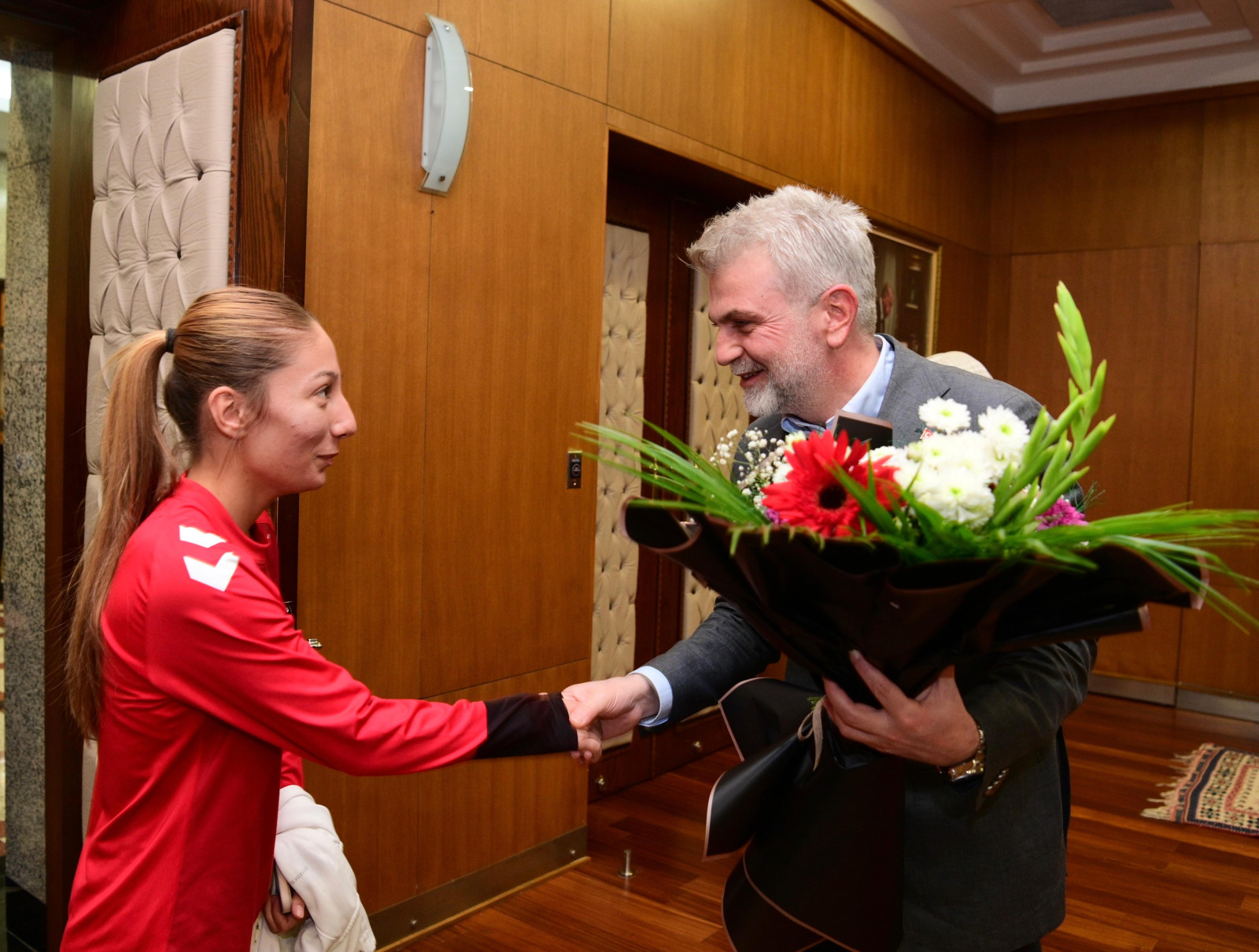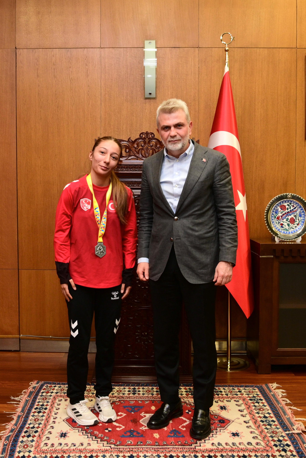 Ziyarete ilişkin değerlendirmelerde bulunan Büyükşehir Belediye Başkanı Fırat Görgel, “Romanya’da düzenlenen U17 Güreş Balkan Şampiyonası’nda elde edilen bu önemli başarı, bizler için büyük bir gurur kaynağı oldu. 48 kilogramda Balkan Şampiyonu olan Şamil Şahan’ı, 45 kilogramda altın madalya kazanan İbrahim Bera Kıvrak’ı ve 43 kilogramda gümüş madalya elde eden Hatice Kazmacı’yı yürekten kutluyorum. Kahramanmaraş, tarih boyunca spora ve özellikle güreşe büyük değer vermiş bir şehir. Bu genç sporcularımız, bu geleneği başarıyla sürdürerek bizlere onur yaşattı. Bizler de Kahramanmaraş Büyükşehir Belediyesi olarak sporun her branşında gençlerimizin yanında olmaya, tesis yatırımlarımızı artırmaya ve geleceğin şampiyonlarını desteklemeye kararlıyız. Şampiyonlarımızı, ailelerini ve emeği geçen antrenörlerimizi tebrik ediyor, başarılarının daim olmasını diliyorum” ifadelerini kullandı.