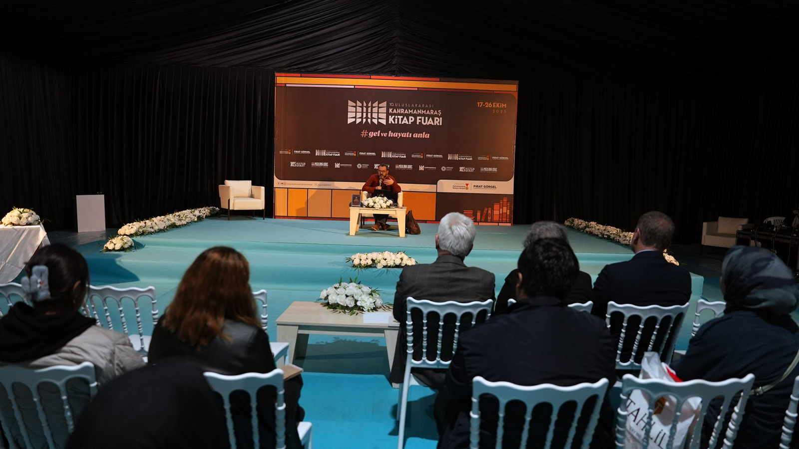 Kahramanmaraş Büyükşehir Belediyesinin düzenlediği 10. Uluslararası Kahramanmaraş Kitap Fuarı, edebiyatseverlerin buluşma noktası olmaya devam ediyor. KAFUM’da düzenlenen ve şehrin kültürel dinamizmine önemli katkılar sunan fuarda edebiyat tutkunlarını bir araya getirerek kentin kültürel hayatına renk katmaya devam ediyor. Fuar kapsamında düzenlenen söyleşide edebiyat tutkunları ile bir araya gelen öykü ve roman yazarı Güray Süngü, yazarlık yolculuğuna ilişkin önemli anekdotlar paylaştı. Kendi kitaplarından bölümlerle yazma yolculuğunu anlatan Süngü, edebiyatseverlerle ilham dolu bir sohbet gerçekleştirirken, Kahramanmaraş’ın edebiyata adım atmasında önemli bir yeri olduğunu vurguladı. Söyleşinin ardından Süngü, fuar alanında kitaplarını vatandaşlar için imzaladı.