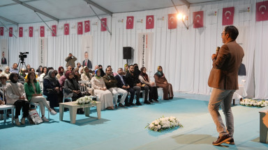 Kahramanmaraş Büyükşehir Belediyesinin “Gel ve Hayatı Anla” temasıyla bu yıl 10’uncusunu düzenlediği Uluslararası Kahramanmaraş Kitap Fuarı, birbirinden değerli yazar ve uzmanları okurlarla buluşturmaya devam ediyor. Fuarın dikkat çeken konuklarından biri de çocuk psikolojisi, çocuk eğitimi ve oyun terapisi alanlarında Türkiye’nin önde gelen isimlerinden Klinik Psikolog ve Yazar Dr. Mehmet Teber oldu. KAFUM’da gerçekleştirilen söyleşide vatandaşlarla bir araya gelen Dr. Teber, çocukların pedagojik gelişimi, psikososyal sağlık ve deprem sonrası iyileşme süreçleri üzerine önemli değerlendirmelerde bulundu. Katılımcıların yoğun ilgi gösterdiği programda, Teber’in paylaştığı bilgiler ve örnekler büyük beğeni topladı. Söyleşi boyunca çocukların gelişim dönemlerinde ailelerin dikkat etmesi gereken konulara değinen Teber, özellikle travma sonrası çocukların duygusal ihtiyaçlarının önemine vurgu yaptı. Depremin sadece fiziki değil, psikolojik ve sosyal etkilerinin de uzun vadede ele alınması gerektiğini ifade eden Teber, “Bir çocuğun güven duygusunu yeniden inşa etmek, bir binayı inşa etmek kadar önemlidir” mesajını verdi. Etkinliğin ardından kitaplarını okurları için imzalayan Teber, yoğun ilgiyle karşılandı. Her yaştan vatandaşın katıldığı buluşma sonunda, katılımcılar programın oldukça verimli geçtiğini belirterek Büyükşehir Belediyesine ve Mehmet Teber’e teşekkür etti.