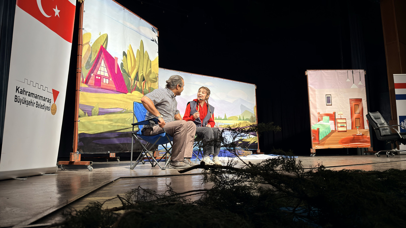 Kahramanmaraş Büyükşehir Belediyesi ile Hollanda Büyükelçiliği iş birliğinde yürütülen kültür sanat projesi kapsamında, Afşin ve Göksun’un ardından bu kez şehir merkezindeki çocuklar uluslararası bir tiyatro deneyimiyle buluştu. Hollandalı çocuk edebiyatı yazarı Arjan Dwarshuis tarafından kaleme alınan “Ronnie – Göldeki Fısıltı” eserinden sahneye uyarlanan tiyatro oyunu, Necip Fazıl Kısakürek Kültür Merkezi’nde minik sanatseverlerle buluştu. Yoğun ilgi gören oyun, doğa bilinci, arkadaşlık ve dayanışma temalarını merkezine alan güçlü kurgusuyla çocuklara hem eğlenceli hem de öğretici bir atmosfer sundu. Renkli sahne tasarımı, canlı kostümler ve interaktif anlatım diliyle dikkat çeken yapım, çocukların oyunun akışına doğrudan katılım sağlayarak sahnedeki karakterlerle etkileşim kurmasına imkân tanıdı.