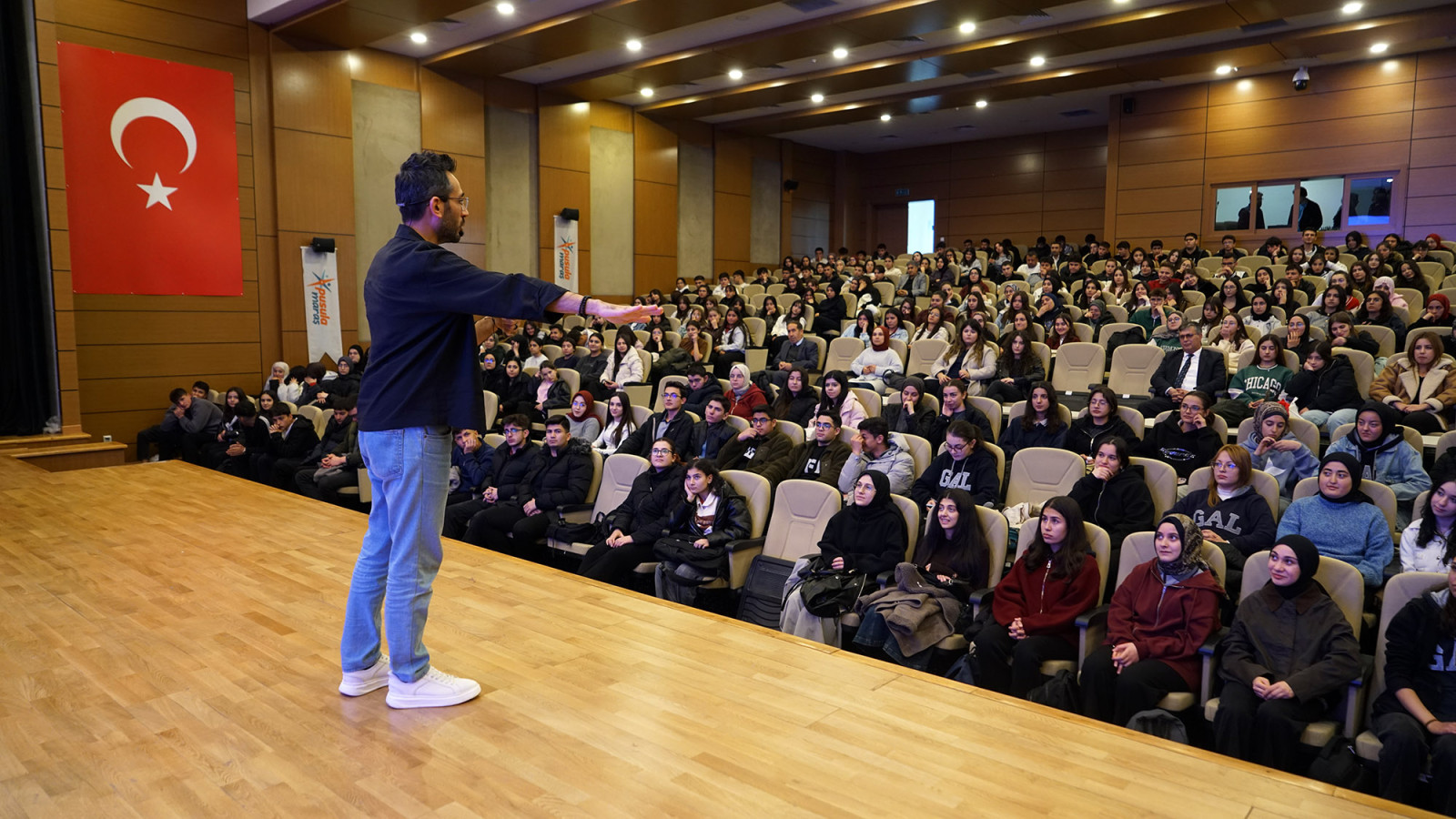 Kahramanmaraş Büyükşehir Belediyesinin gençlik markası Pusula Maraş tarafından sınav maratonundaki gençlere yönelik düzenlenen Motivasyon Günleri programı, eğitimci – yazar Gökhan Müftüoğlu’nun (Gri Koç) katılımıyla Göksun’da sürdü. Türkiye’de milyonlarca öğrencinin takip ettiği Gri Koç, Göksun 100. Yıl İlçe Halk Kütüphanesi Konferans Salonu’nda gençlerle bir araya gelerek sınav hazırlık sürecine dair önemli motivasyon başlıklarını paylaştı. Salonun tamamen dolduğu programda gençlerle samimi bir atmosferde buluşan Müftüoğlu, sınav stresinin yönetiminden konsantrasyon artırmaya, doğru çalışma tekniklerinden zaman planlamasına kadar pek çok konuda yol gösterici aktarımlarda bulundu. Sosyal medyada büyük etki uyandıran içerikleri, kaleme aldığı kitaplar ve Türkiye’nin birçok şehrinde gerçekleştirdiği konferanslarla geniş bir kitleye ulaşan Gri Koç, Göksun’daki gençlere hem akademik hem de kişisel gelişim açısından kritik öneriler sundu. Konuşmasında sınav sürecinin yalnızca bilgi birikimi değil aynı zamanda disiplin, duygusal dayanıklılık ve stratejik çalışma alışkanlıkları gerektirdiğine dikkat çeken Müftüoğlu, dikkat dağınıklığını azaltmaya yönelik uygulanabilir teknikler, sınav öncesi kaygıyı kontrol edebilecek nefes ve zihinsel rahatlama egzersizleri ile günün verimli kullanılmasına yönelik çalışma takvimi önerilerini paylaştı.