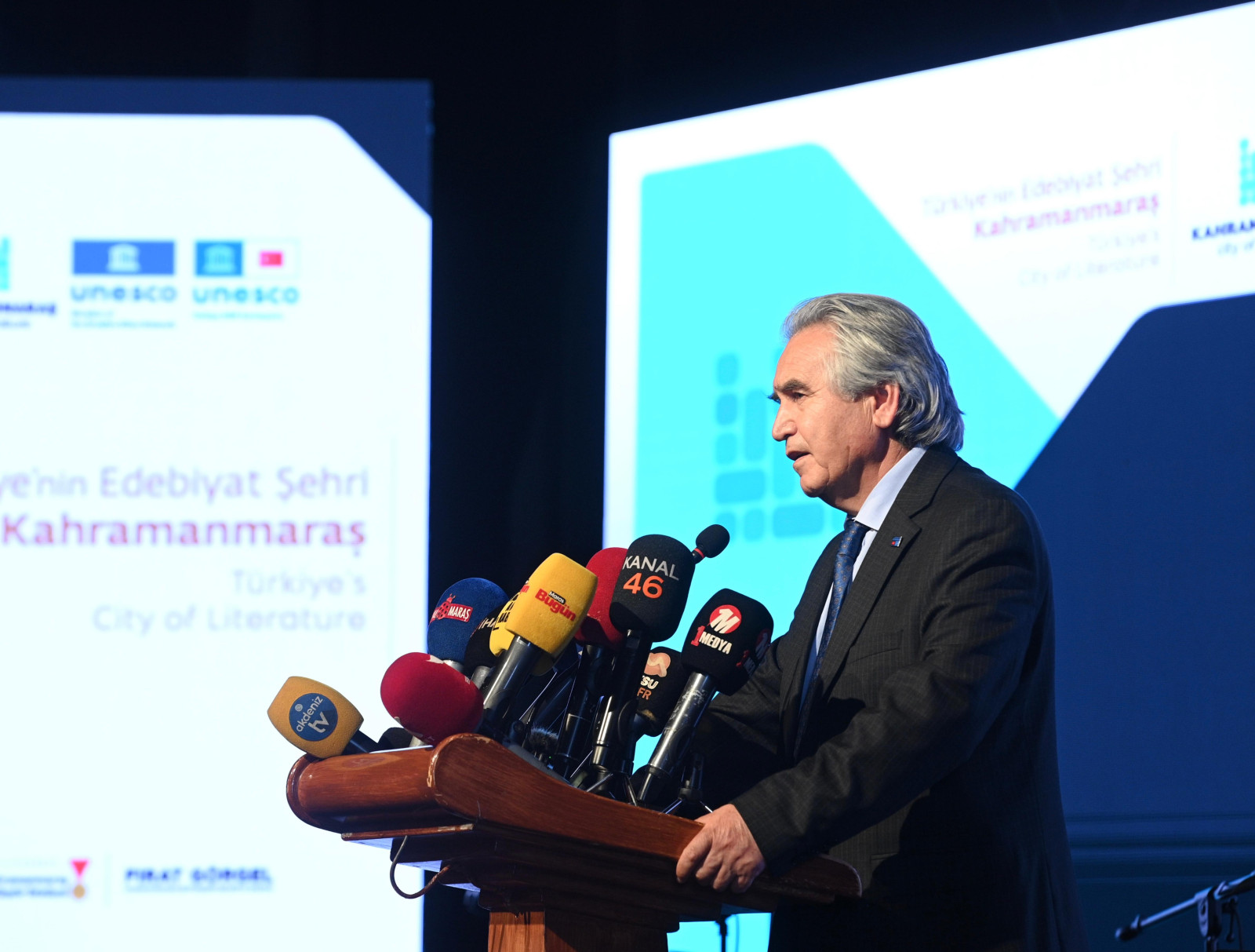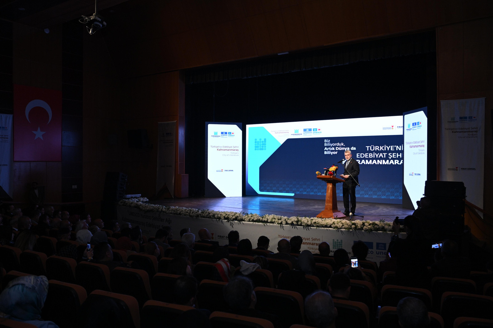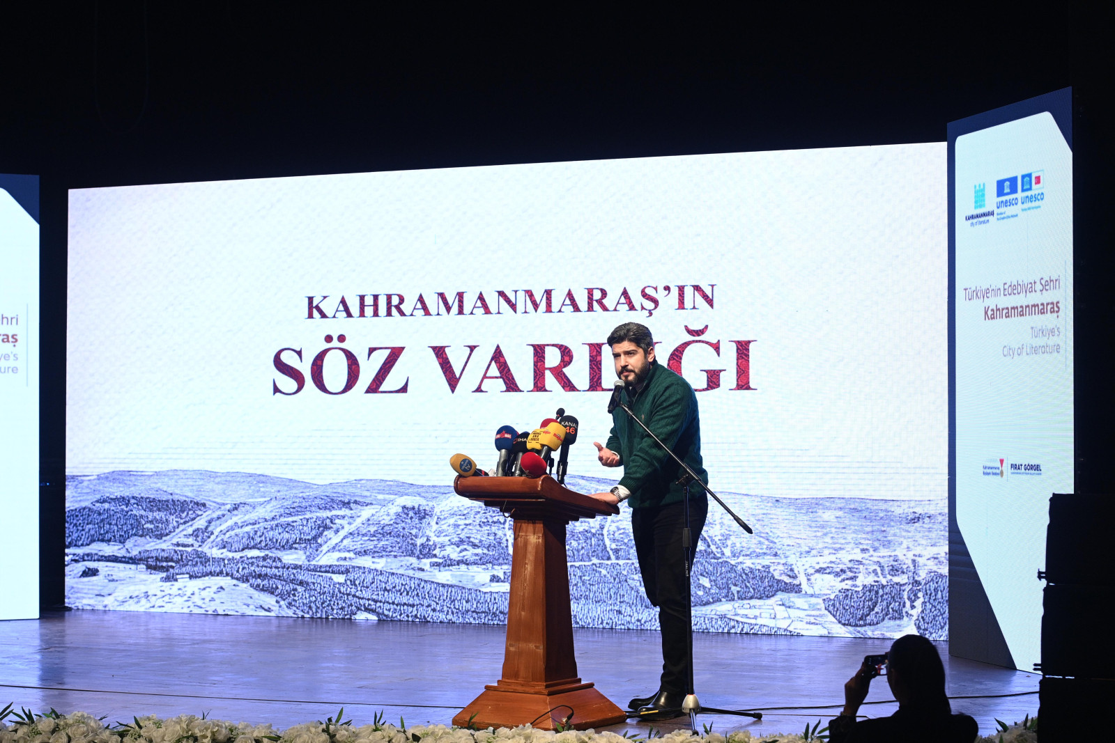 Programda konuşan Büyükşehir Belediye Başkanı Fırat Görgel, “Bugün Kahramanmaraş’ımız için yüzlerce yıldır süregelen büyük bir gerçeğin uluslararası tescille taçlandığı tarihi bir anın heyecan ve gururunu yaşıyoruz. Mutlu ve gururluyuz çünkü Kahramanmaraş’ımız; Barcelona’nın, Beyrut’un, Dublin’in, Bağdat’ın, Melbourne’ün, Tanca’nın, Lahore’un yer aldığı 63 şehirlik çok önemli bir ağın en yeni üyesi. UNESCO Yaratıcı Şehirler Ağı’na edebiyat alanında dahil olan kahraman şehrimiz, bu ağın bu alanında Türkiye’yi temsil edecek ilk ve tek şehir oldu. Hepinizin bildiği gibi başta Yedi Güzel Adam olmak üzere Türk edebiyatının nice güzel şair ve yazarına annelik yapmış olan Kahramanmaraş’ımız düşünceye, dile ve estetiğe yön veren bir merkez olmuştur. Şairin, yazarın sesi bu topraklarda her zaman en gür haliyle yankılanmıştır. Bu zenginlik, bu derinlik ve bu kesintisiz üretim bizim için her zaman en büyük gurur kaynağı olmuştur. İşte bugün, bu tarihi hakikat artık yalnızca bizim bildiğimiz, bizim hissettiğimiz bir hakikat olmaktan çıkmış; UNESCO tarafından tescillenerek tüm dünyaya ilan edilmiştir” cümlelerini kaydetti.