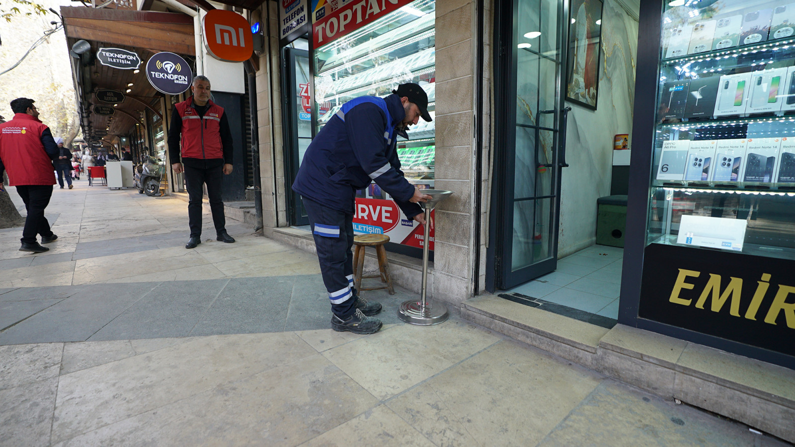 Büyükşehir Belediyesi, izmaritlerin çevreye atılması sonucu oluşan kirlilik sorununu önlemek amacıyla şehir merkezinde ayaklı küllük dağıtımı gerçekleştirdi. Esnaf ve vatandaşlara uyarılarda bulunan ekipler, gelişigüzel atılan izmaritlerin kabahatler kanunu kapsamında suç olduğu ve cezai işlem uygulanacağı belirtildi.