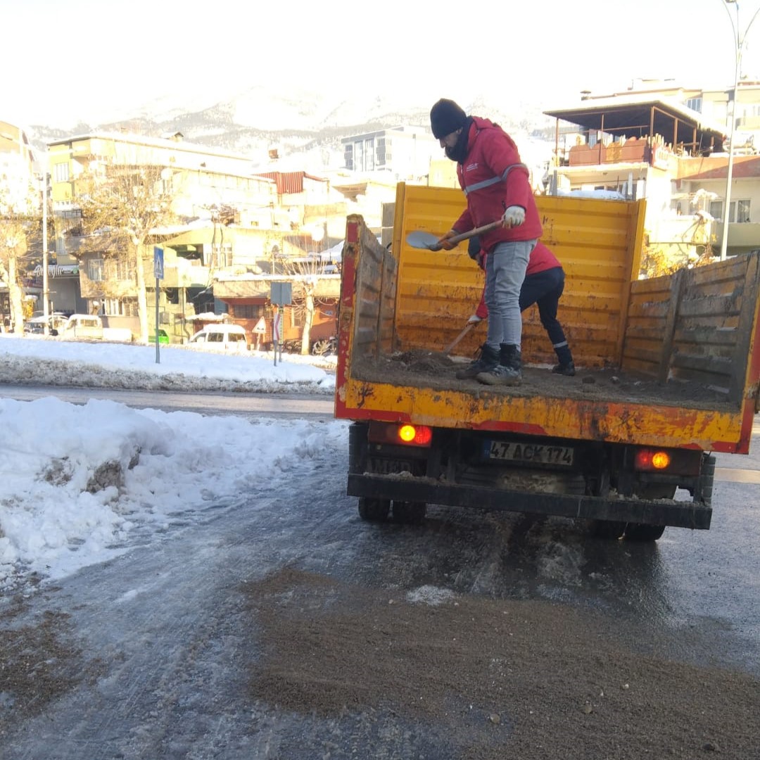 Büyükşehir Belediyesi, olumsuz hava koşulları neticesinde oluşacak buzlanmanın önüne geçmek için şehir genelinde tuzlama ve solisyon uygulamalarını durmaksızın sürdürüyor.
