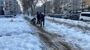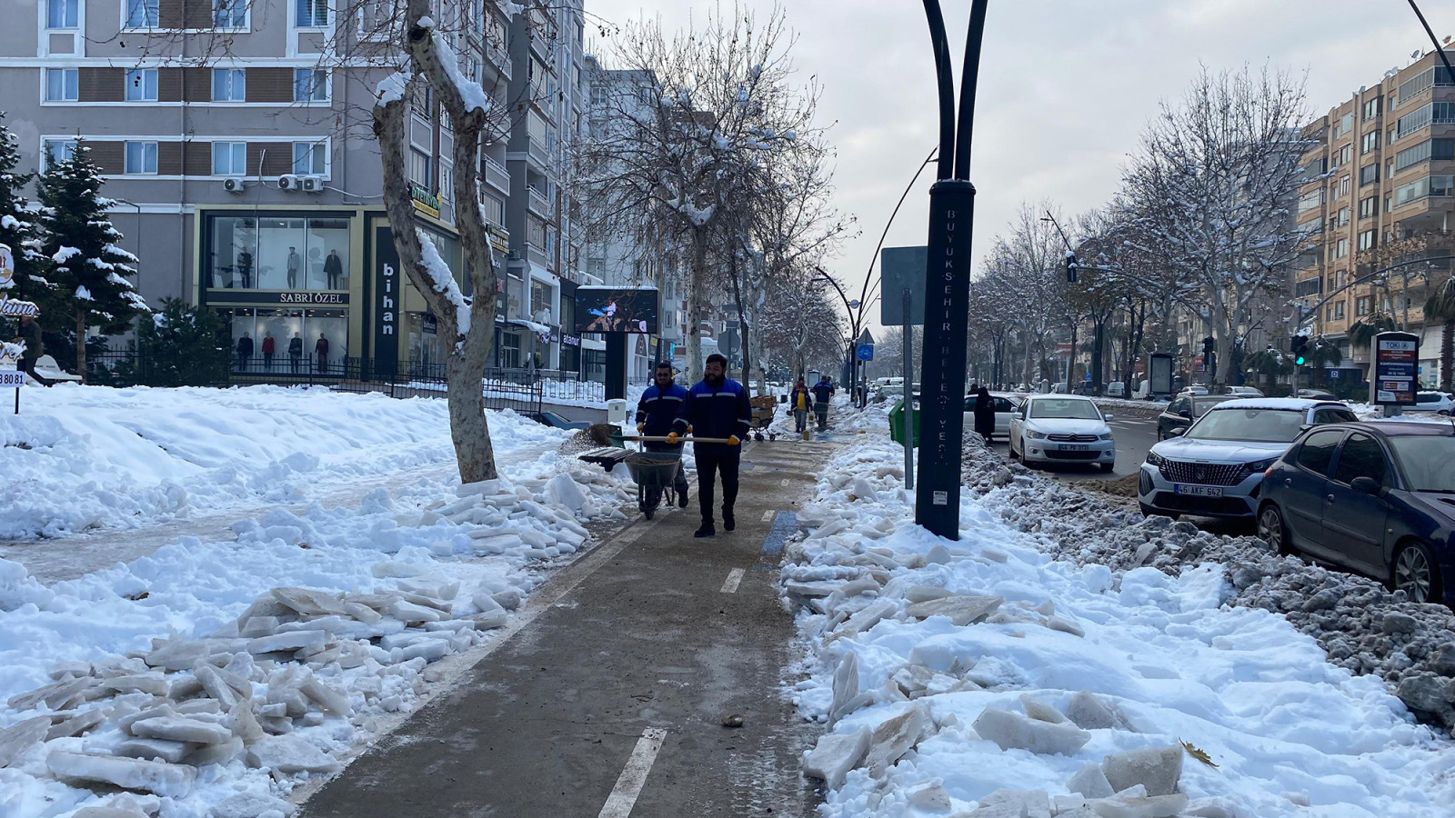 Büyükşehir Belediyesi, yayaların güvenliğini sağlamak amacıyla kaldırım, yaya yolları, üst geçitler, parklar ve hastane önlerinde oluşan buzlanmaya karşı kapsamlı temizlik ve tuzlama çalışmalarını sürdürüyor.