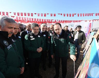 Bakan Yumaklı konuşmasının devamında Kahramanmaraş’ta hayata geçirilen projelere ilişkin de detaylı bilgiler paylaştı. Bakan Yumaklı, “Kahramanmaraş’ta bu anlamda önemli ihtiyaç ve yatırımları bu kısa süre içinde tamamladık ve vatandaşlarımız ile üreticilerimizin hizmetine sunduk. 7,6 Milyar Lira yatırım bedeliyle Afşin Adatepe Sulaması 1. Kısım işini tamamlayarak 73 bin 740 dekar alanı sulamaya açtık. Çiftçilerimiz geçen yıl ilk kez ürünlerini bu tesisle suladı. 5 Milyar Lira maliyetli TOKİ Deprem Konutları içmesuyu projesiyle 10 bin 105 konutun yıllık 9 milyon metreküp içmesuyu ihtiyacını karşıladık. 4,5 Milyar Lira yatırımla Kılavuzlu Sulaması 2. Kısım kapsamında 180 bin dekar alanı sulamaya hazır hale getirdik. Andırın Hapisağzı Göleti ile 4 bin 180 dekar tarım arazisini suyla buluşturduk” ifadelerini kullandı.