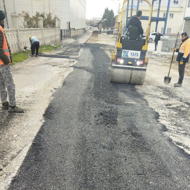 Altyapı imalatları esnasında yol yüzeylerinde meydana gelen bozulmaların onarımı için sıcak asfalt yama çalışmaları durmaksızın devam ediyor. Gerçekleştirilen çalışmalarla, yollarda oluşan tahribatlar bir bir gideriliyor.