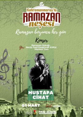 Kahramanmaraş Büyükşehir Belediyesi, Ramazan ayının manevi iklimini şehrin dört bir yanında hissettirmeye devam ederken, kültür ve sanat etkinliklerine bir yenisini daha ekliyor. Ramazan Sokağı’nda gerçekleştirilen programlar kapsamında bu kez sevilen sanatçı Mustafa Cihat, Kahramanmaraşlılarla buluşacak. Şehrin önemli buluşma noktalarından biri haline gelen Ramazan Sokağı, her akşam farklı bir etkinlikle vatandaşları ağırlamayı sürdürüyor. Geleneksel Ramazan atmosferini yaşatmayı amaçlayan etkinliklerin yeni konuğu olan Mustafa Cihat, 1 Mart Pazar günü saat 20.30’da sahne alacak. Sanatçı, seslendireceği ezgi ve ilahilerle katılımcılara hem duygusal hem de huzur dolu bir akşam yaşatacak. Ramazan ayının ruhuna uygun eserlerin yer alacağı programda, birlik, kardeşlik ve maneviyat temaları ön plana çıkacak.