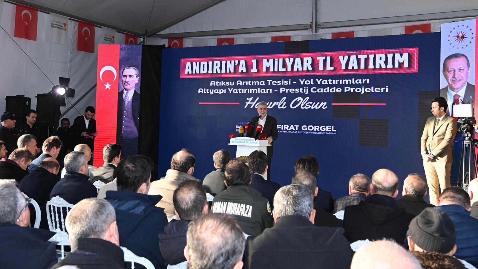 Programda konuşan Büyükşehir Belediye Başkanı Fırat Görgel, “Devlet millet el ele vererek şehrimizi, ilçemizi her alanda ayağa kaldırmak için kararlı bir şekilde yol alıyoruz. Büyükşehir Belediyesi olarak, 11 ilçemizde canla başla çalışıyoruz ve Andırın’da da sağlam temeller atmayı önceledik. Çünkü güçlü şehirler, güçlü altyapıyla yükselir. Bu kapsamda; Andırın Atıksu Arıtma Tesisimizi tamamladık. Arıtma tesisimiz ile içmesuyu ve kanalizasyon yatırımları, Akifiye İçmesuyu İsale Hattı çalışmaları toplam 530 Milyon TL maliyetle hayata geçirildi. Son teknoloji sistemlerle kurulu bir arıtma tesisi. İlçemize, hemşehrilerime hayırlı olsun” dedi.