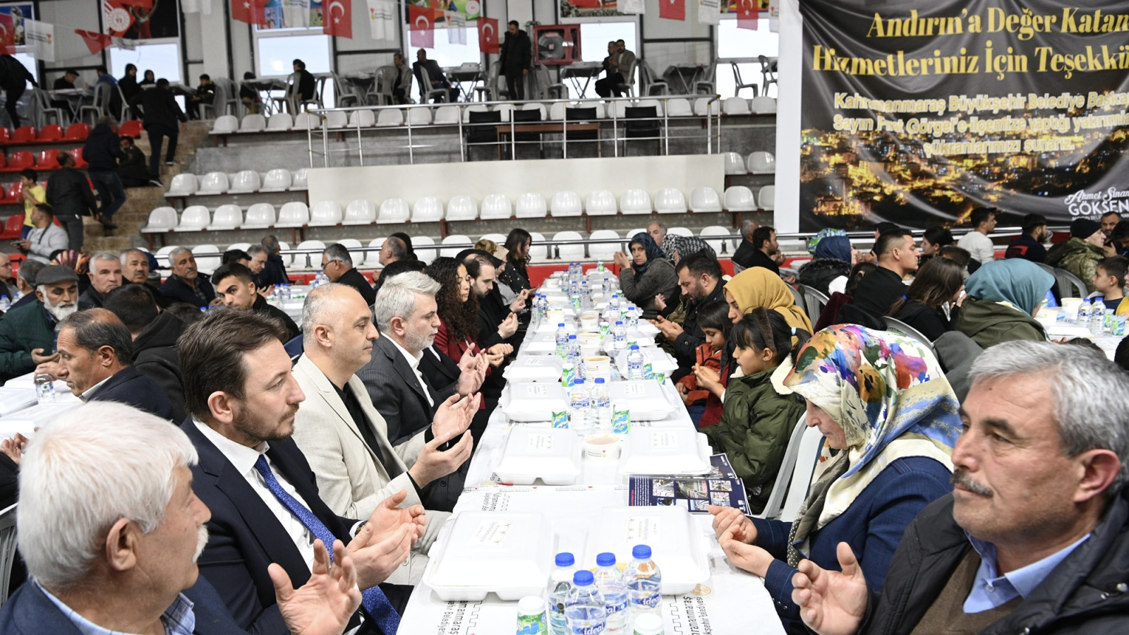 Büyükşehir Belediyesinin gönül sofrası bu kez Andırın’da kuruldu. Programda konuşan Başkan Görgel, “Bugün Andırın’da bereketli bir gün yaşıyoruz. İlçemize kazandırdığımız 1 Milyar TL’nin üzerinde alt ve üstyapı yatırımının toplu açılış törenini gerçekleştirdik. Şimdi ise iftar sofrasının bereketini Andırınlı hemşehrilerimizle birlikte yaşıyoruz. Rabbim birlik beraberliğimizi daim eylesin” dedi.