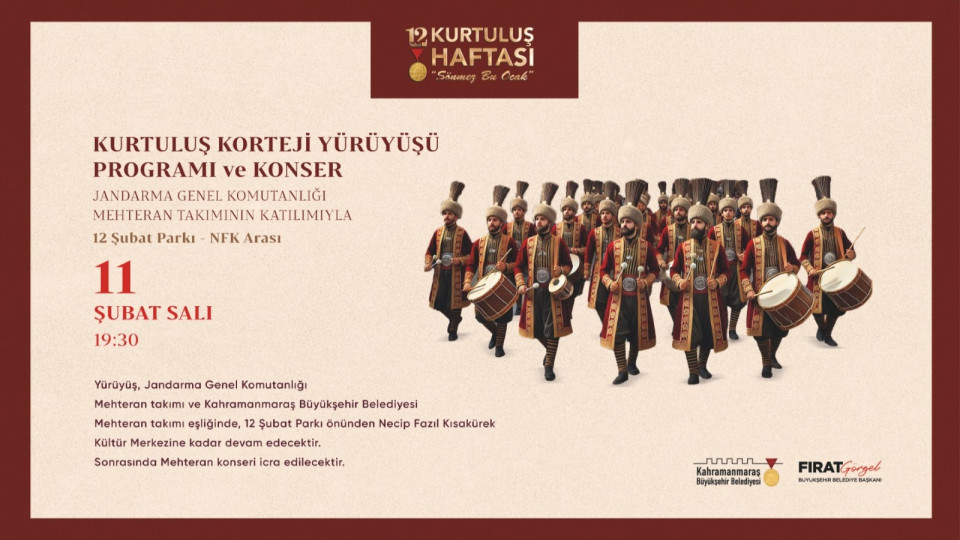 Şehrin düşman işgalinden kurtuluşunun 105. yıl dönümü dolayısıyla gerçekleştirilen etkinlikler 10, 11 ve 12 Şubat tarihlerinde vatandaşlarla buluşmaya devam edecek. Anma törenleri, konferanslar, tiyatro gösterileri ve kortej yürüyüşleri gibi çeşitli programlarla, Kahramanmaraş’ın kurtuluşunun 105. yılı kutlanacak. Kurtuluş coşkusuna tüm vatandaşlar davet edildi.