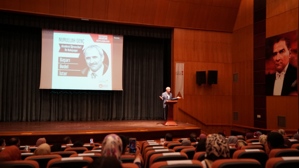 Akademi öğrencileri ile bir araya gelen Yazar Nurullah Genç, “Ben bütün hayatım boyunca hep bir hayal peşinde koştum. Bugün geldiğim noktaya hep kurduğum hayal üzerine geldim. Eğer bir başarıdan söz etmek, bir başarıyı yakalamak istiyorsak, mutlaka bir hayalimiz olmalı” dedi.