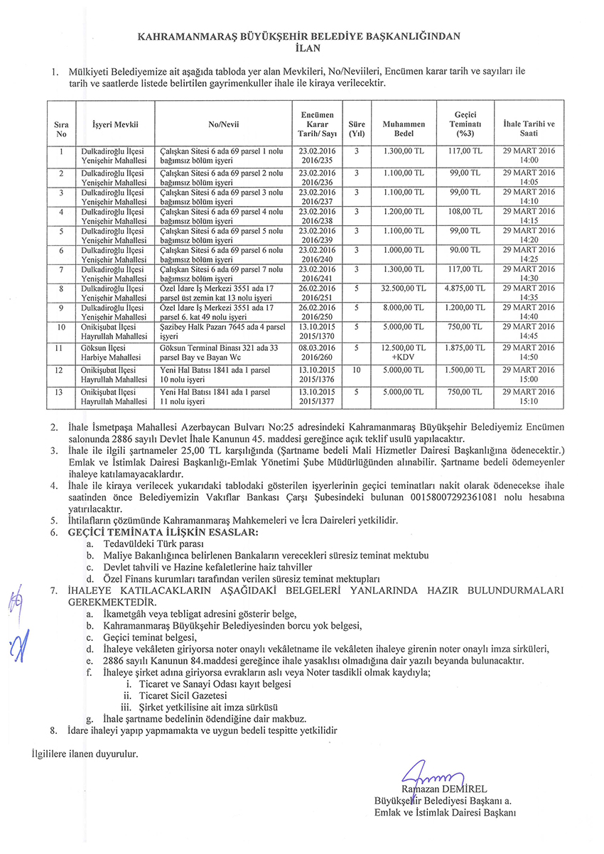 KAHRAMANMARAŞ BÜYÜKŞEHİR BELEDİYESİ İHALE SALONU