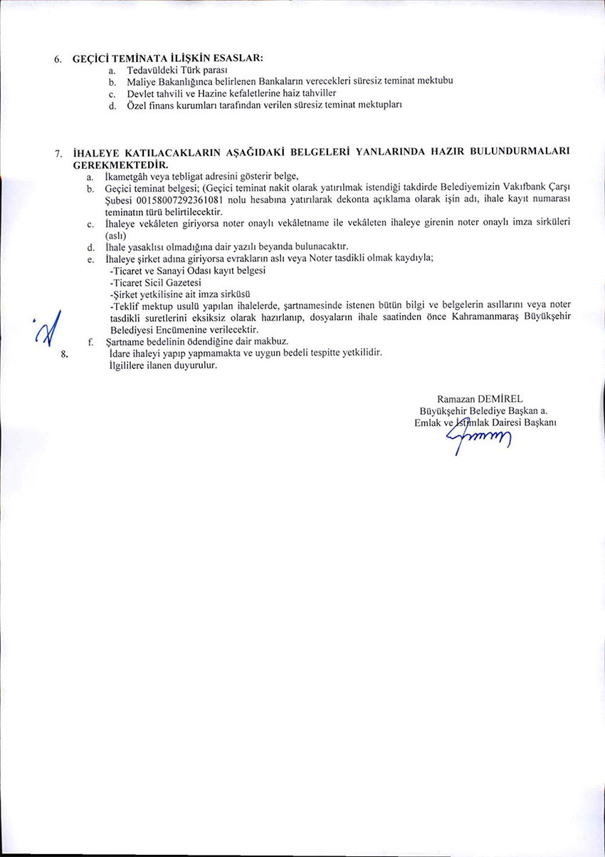 KAHRAMANMARAŞ BÜYÜKŞEHİR BELEDİYESİ İHALE SALONU