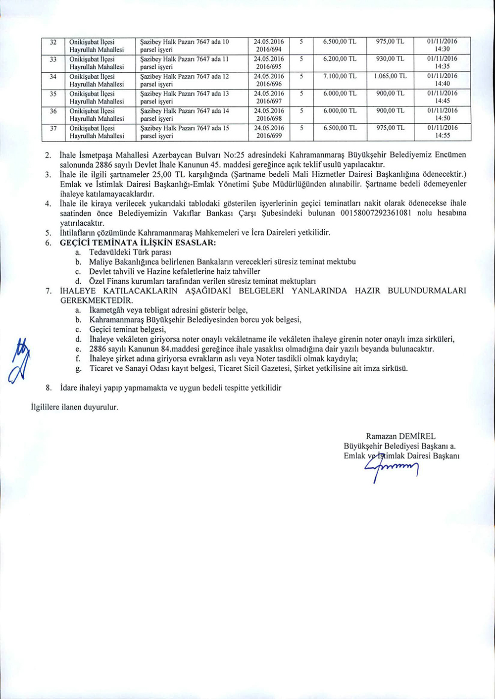 KAHRAMANMARAŞ BÜYÜKŞEHİR BELEDİYESİ İHALE SALONU
