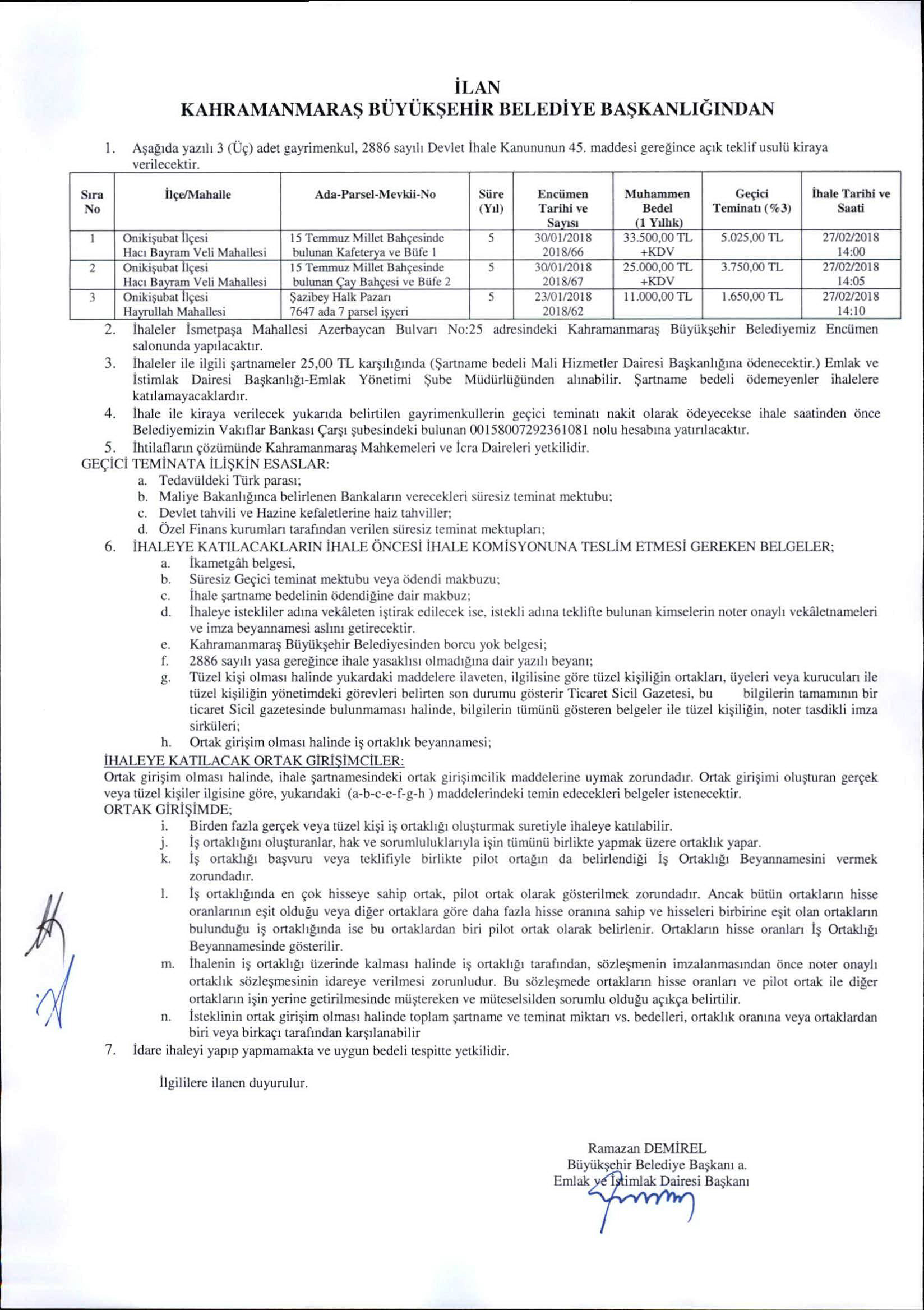 KAHRAMANMARAŞ BÜYÜKŞEHİR BELEDİYESİ İHALE SALONU