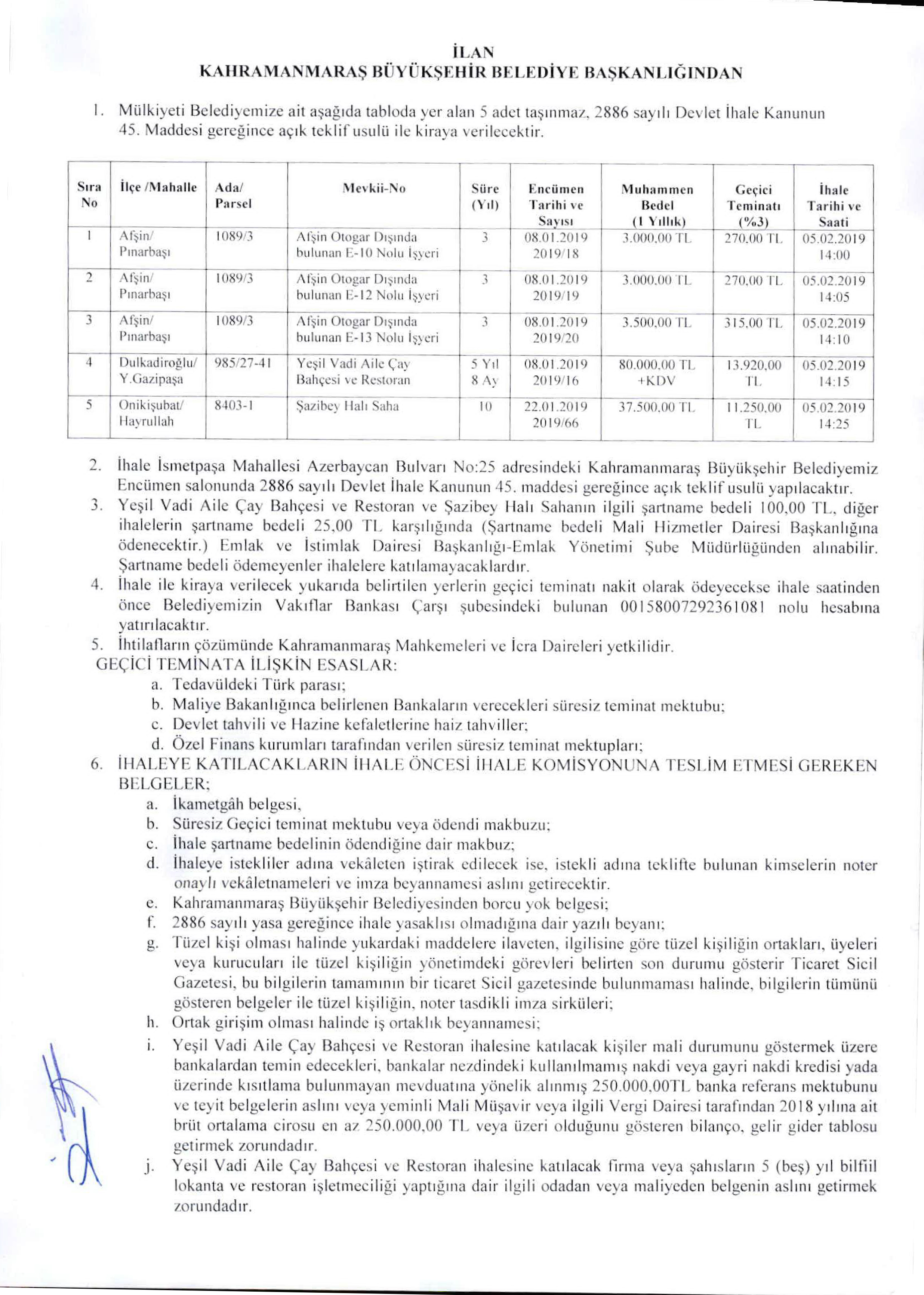 KAHRAMANMARAŞ BÜYÜKŞEHİR BELEDİYESİ İHALE SALONU