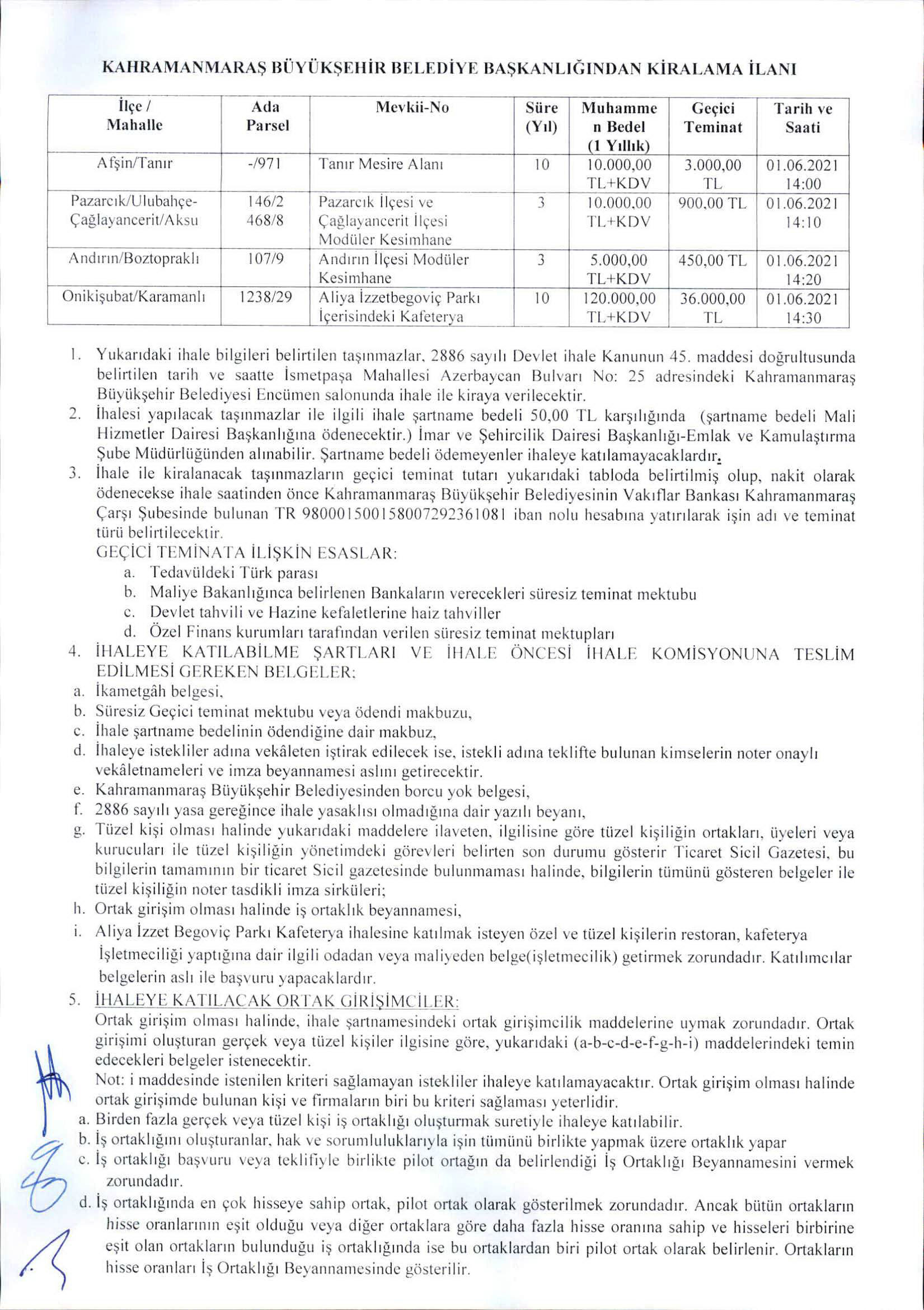 KAHRAMANMARAŞ BÜYÜKŞEHİR BELEDİYESİ İHALE SALONU