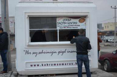 Sosyal Hizmetler Şube Müdürlüğü tarafından, Şekerdere Aşevi, Sanayi Çorba Evi ve gezici ikram çeşmesinin yanı sıra sıcak çorba dağıtım noktalarına bir yenisi daha eklendi.2 Ocak 2014 ‘te açılan Köy Garajı Çorba Dağıtım Noktası; sabahın erken saatlerinde başlayarak her gün ortalama 1000 kişiye hizmet veriyor.Soğuk kış günlerinde vatandaşların ilgisini gören çorba dağıtım noktası haftanın 6 günü bardakta sıcak çorba ikramına devam edecek.