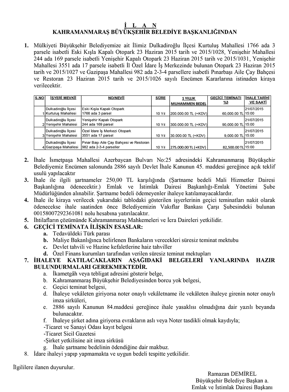 Yukarıda yer alan bilgiler sadece bilgilendirme amaçlıdır. Sitede yayınlanan bilgilerin güncelliği, doğruluğu ve tamlığı konusunda azami özen gösterilmekle birlikte, Kahramanmaraş Büyükşehir Belediyesi bu konuda hiçbir taahhüt ve sorumluluk kabul etmez.