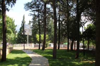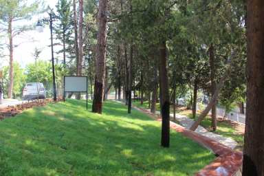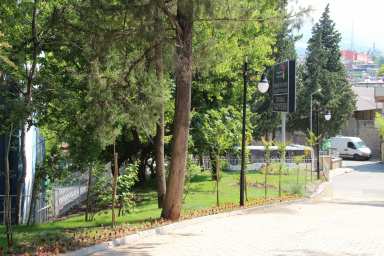 Divanlı taziye evi bahçesindeki 2170 m²’lik alanda toprak tesviye, bordür parke, otomatik sulama tesisatı, çim ekimi ve kapı girişindeli sütunlara taş kaplama çalışmalarımız tamamlanmıştır.