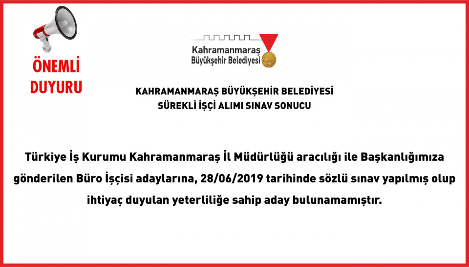 Sürekli İşçi Alımı Sözlü Sınav Sonucu