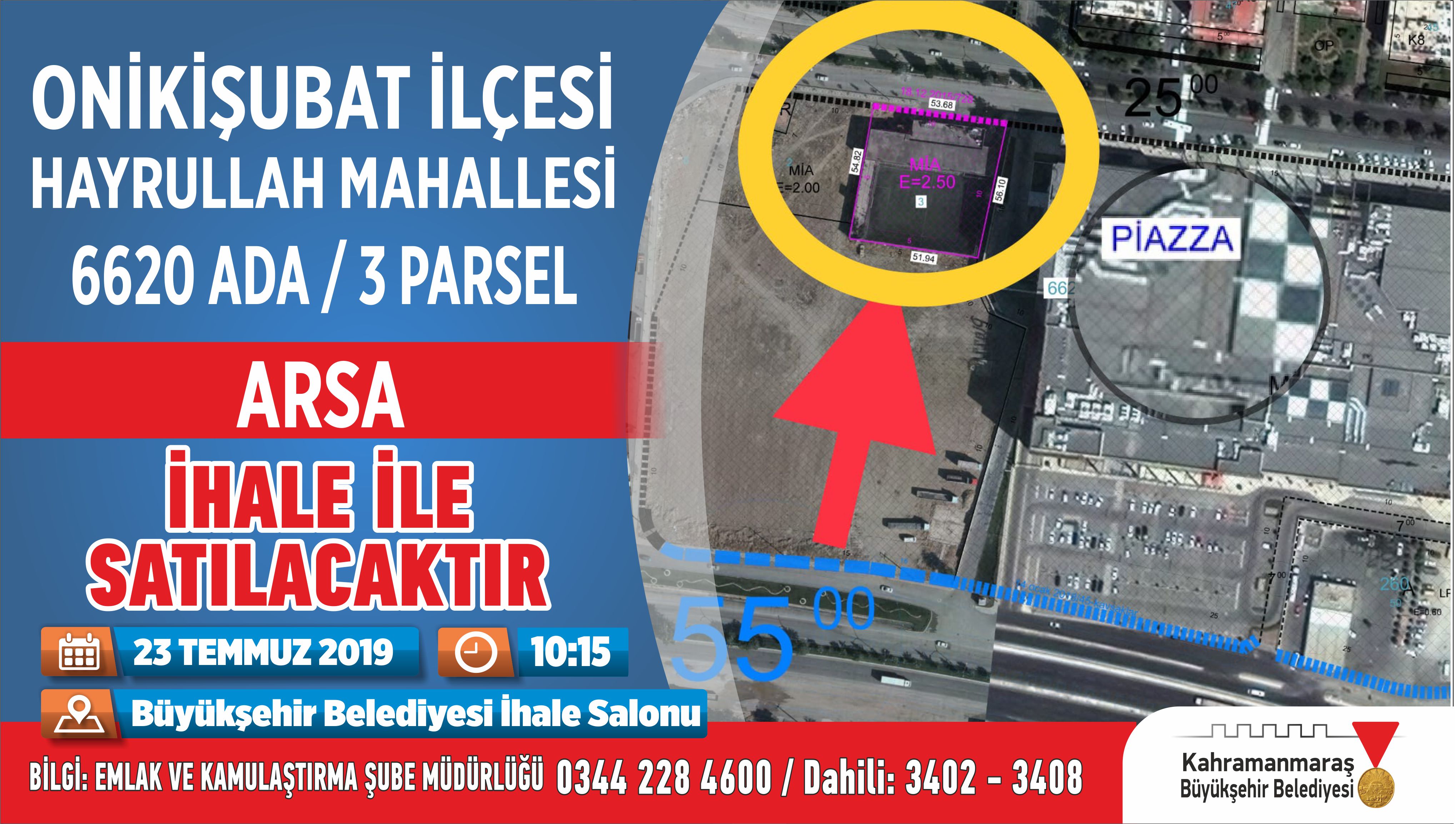 Onikişubat ilçesi Hayrullah Mahallesi 6620 ada 3 parsel arsa ihale ile satılacaktır.