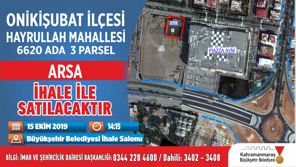 Onikişubat ilçesi Hayrullah Mahallesi 6620 ada 3 parsel arsa ihale ile satılacaktır.