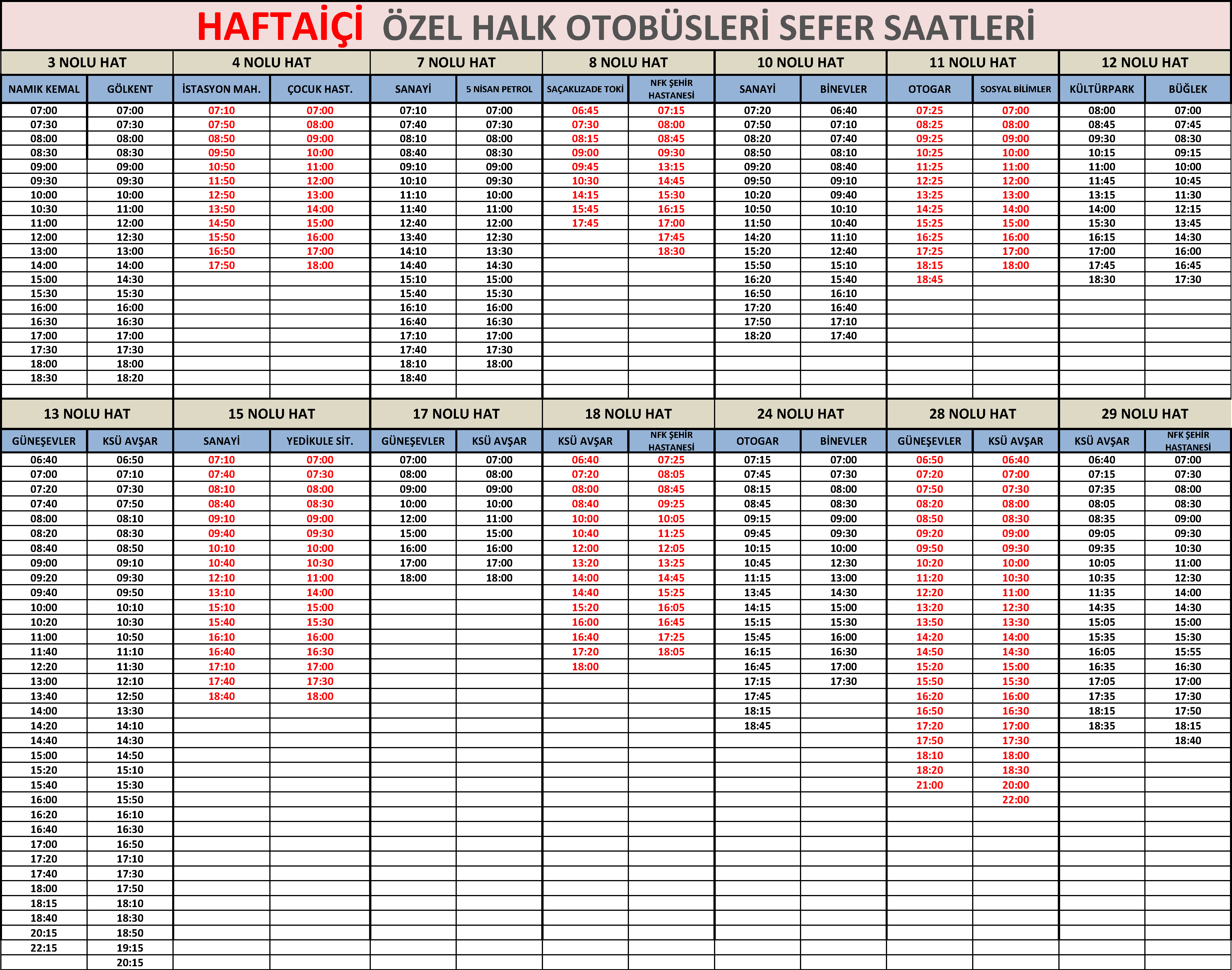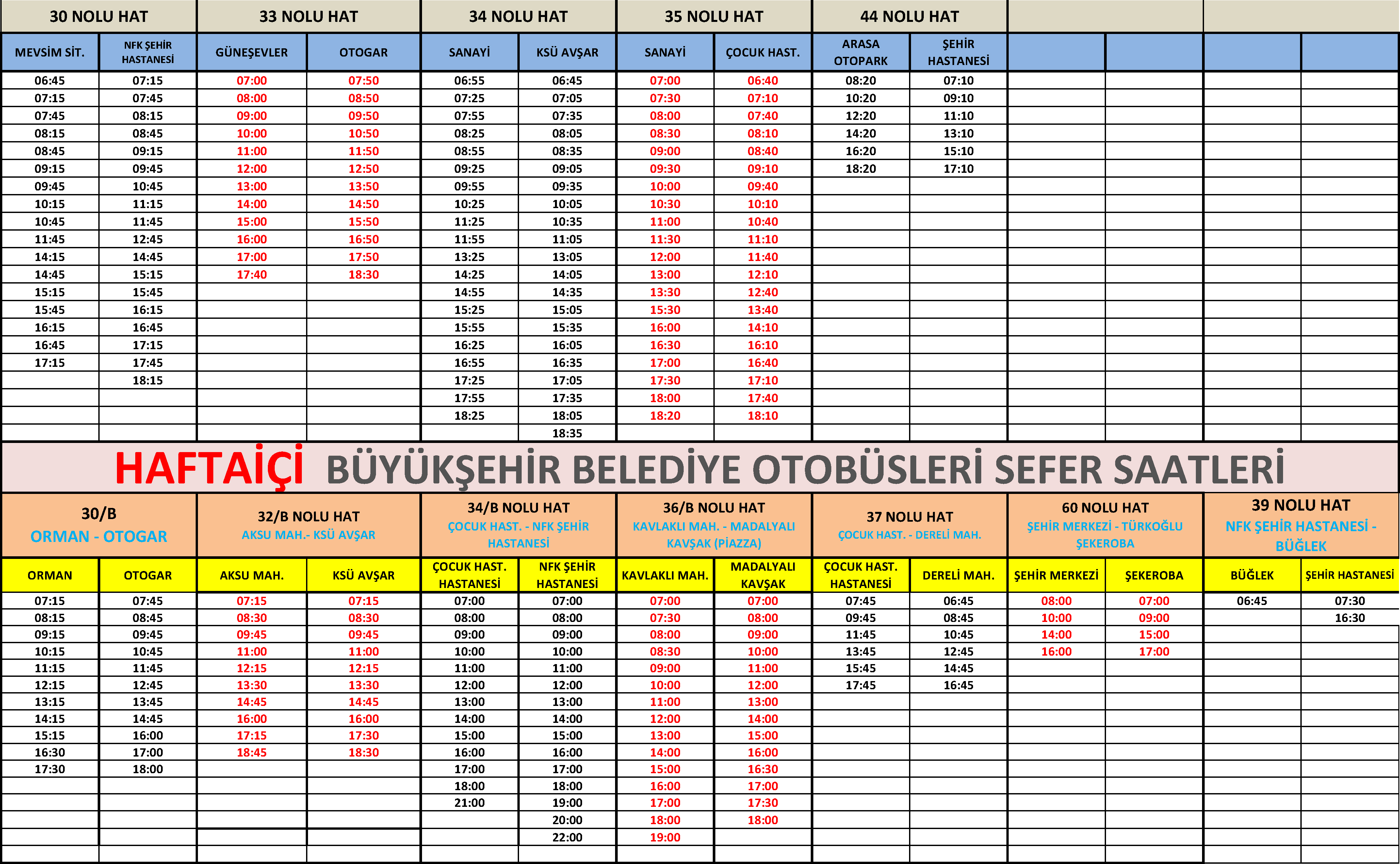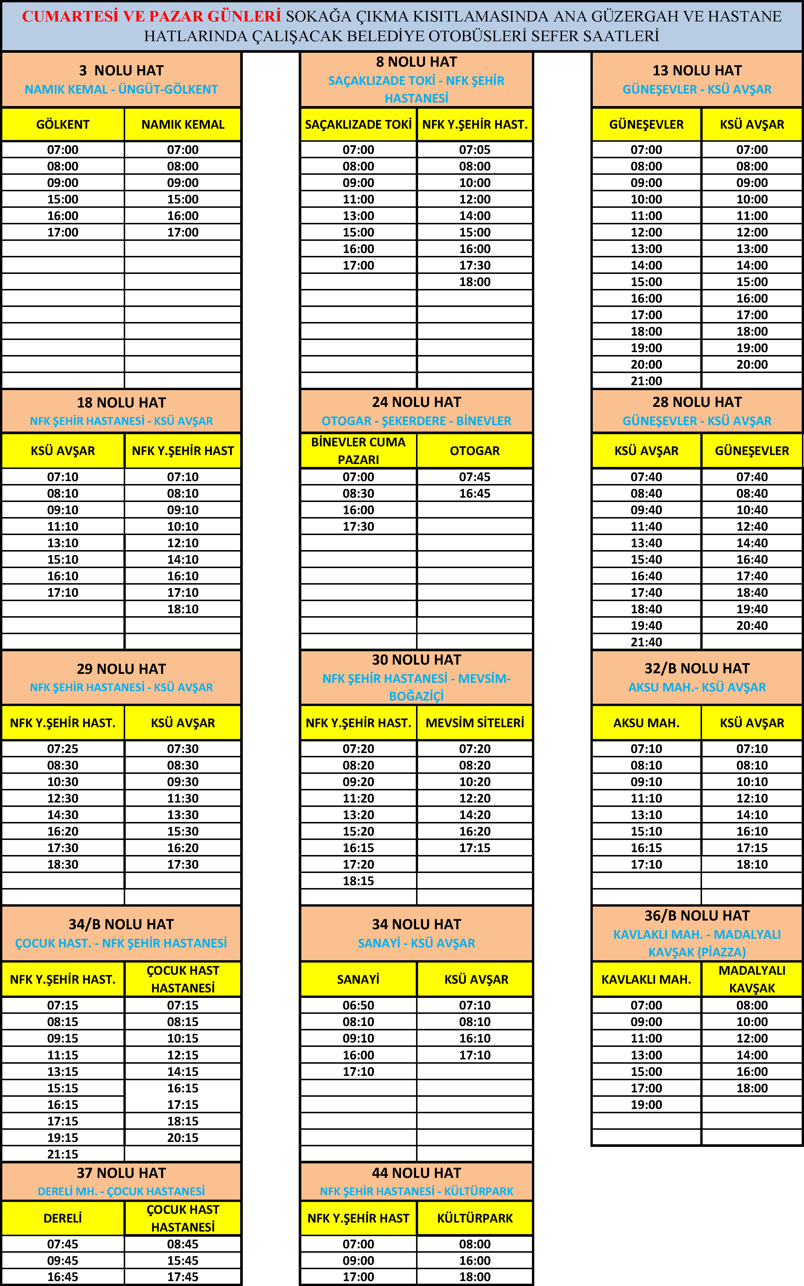 HAFTASONU ÇALIŞAN HATLAR 3-8-13-18-24-28-29-30-32/B-34/B-34-36/B-37-44 OLARAK BELİRLENMİŞTİR.