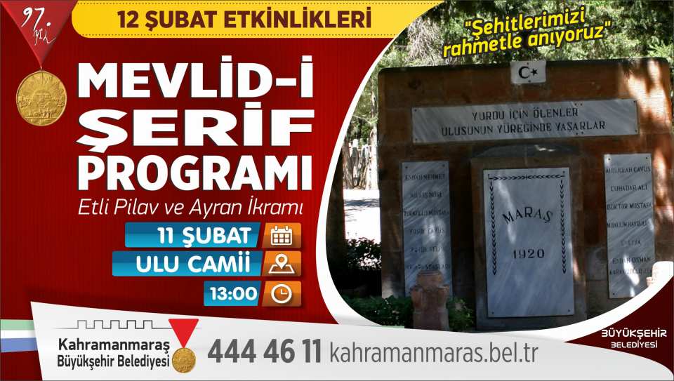12 Şubat Etkinlikleri "Mevlid-i Şerif Programı, Etli Pilav ve Ayran İkramı"