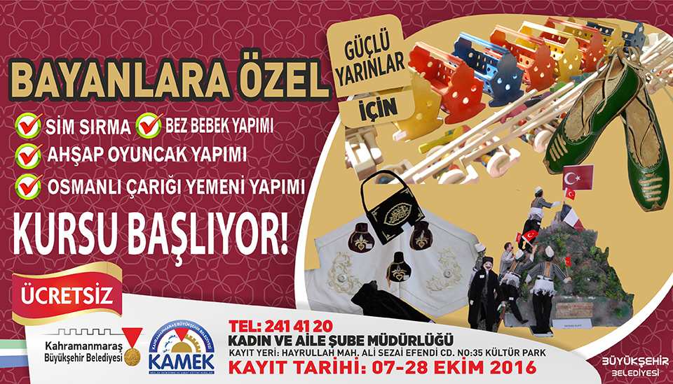 Bayanlara Özel, Sim Sırma, Bez Bebek Yapımı, Ahşap Oyuncak Yapımı ve Osmanlı Çarığı ve Yemeni Yapımı Kursları Başlıyor