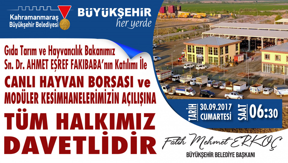 Gıda Tarım ve Hayvancılık Bakanımız Sn. Dr. Ahmet Eşref Fakıbaba'nın katılımı ile Canlı Hayvan Borsası ve Modüler Kesimhanelerimizin Açılışı