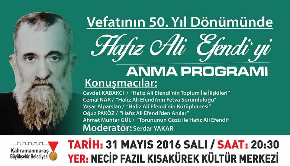 » Vefatının 50. Yıl Dönümünde Hafız Ali Efendiyi Anma Programı