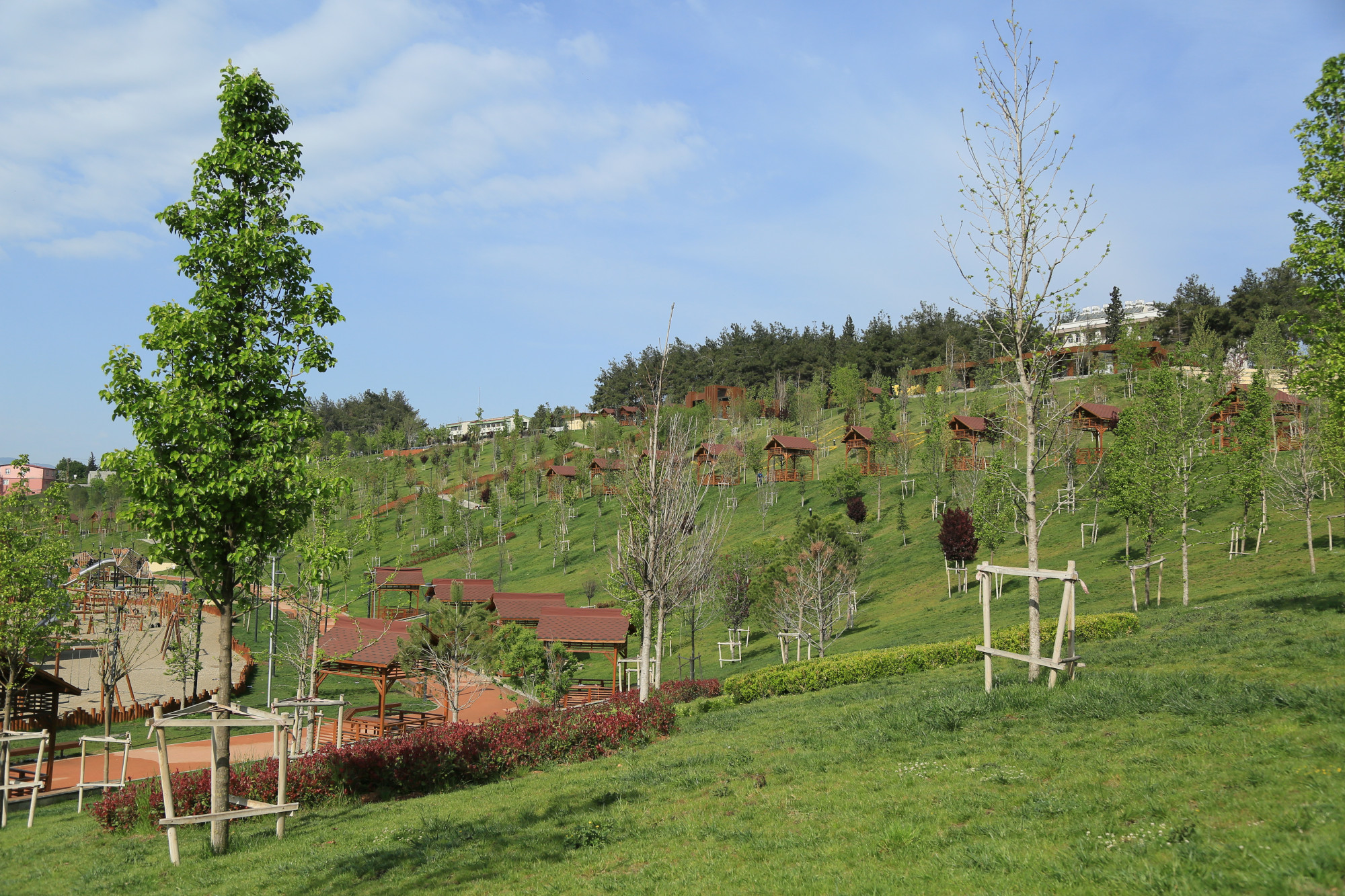 180.000 m² ‘lik alanda; zemin düzenleme ve tesviye, alt yapı drenaj çalışmaları, kuyu ve su deposu çalışmaları, perde duvar çalışmaları, kanalizasyon, yağmur hattı ve içme suyu alt yapı çalışmaları, elektrik alt yapı çalışmaları, 2000 adet ağaç dikimi, biyolojik gölet yapımı 2.950 m², 100 adet çöp kovası, 60 adet piknik masası, 75 adet kamelya,100 adet tekli bank, 9 adet rölyef, 15 temmuz şehitlik anıtı, 8 adet taş çeşme, kafeterya, çay ocağı, mescit, wc, idari bina, 5 adet giriş takı, güvenlik ve büfe yapımı, bitkilendirme ve çim serim çalışmaları ve oyun grupları montaj çalışmaları yapılmıştır.