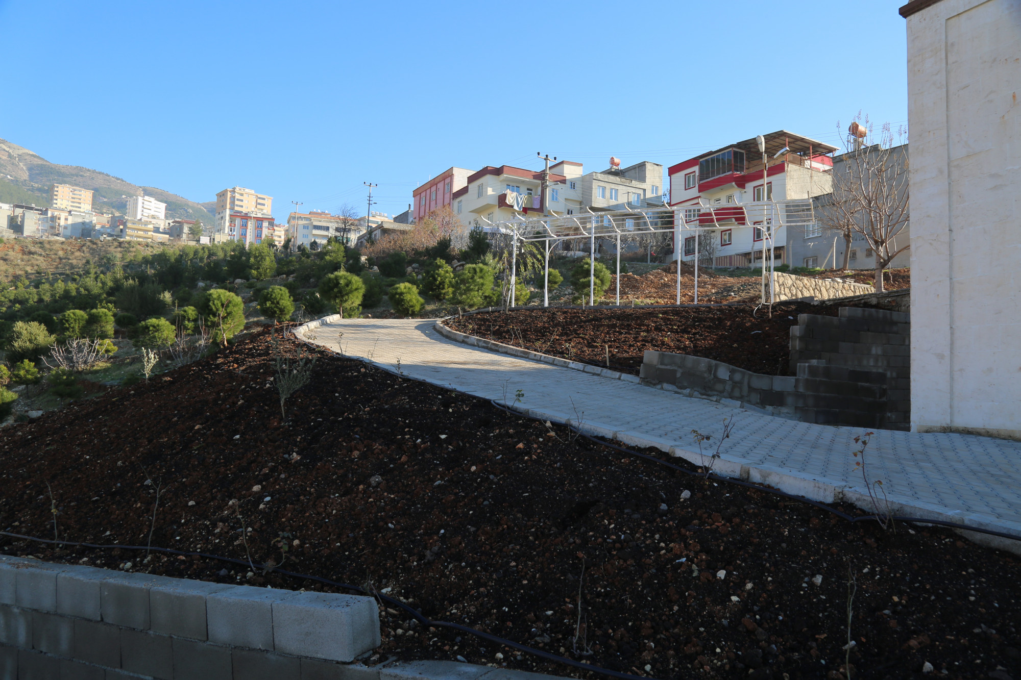 Onikişubat İlçesi Binevler mahallesi sınırları içinde bulunan Namazgah Mehmet Ciğerci Cami çevre düzenleme çalışması kapsamında; Toprak tesviye, bitkilendirme ve sıhhi tesisat çalışmaları yapılmıştır